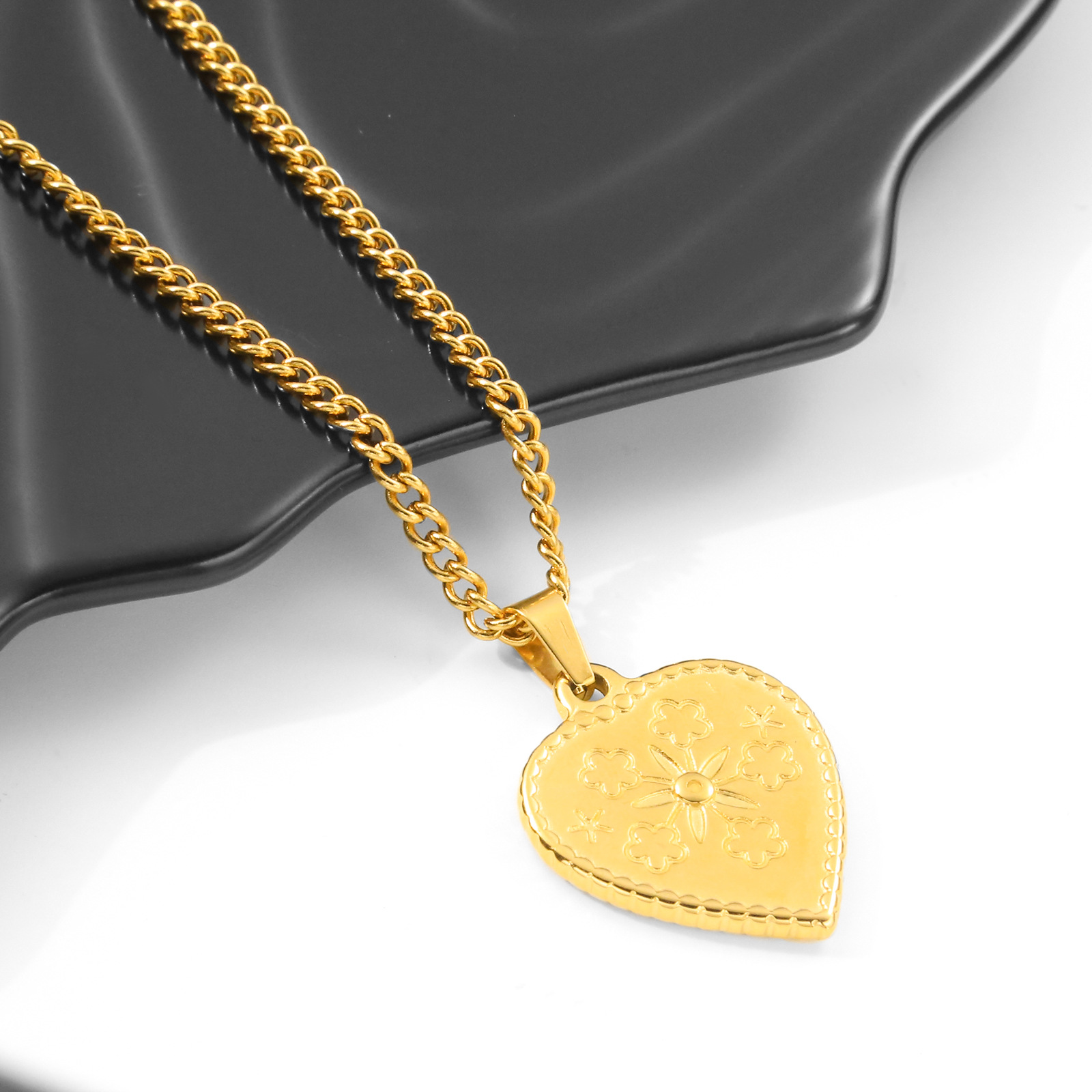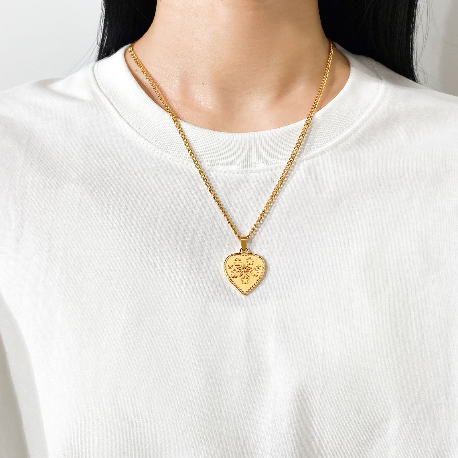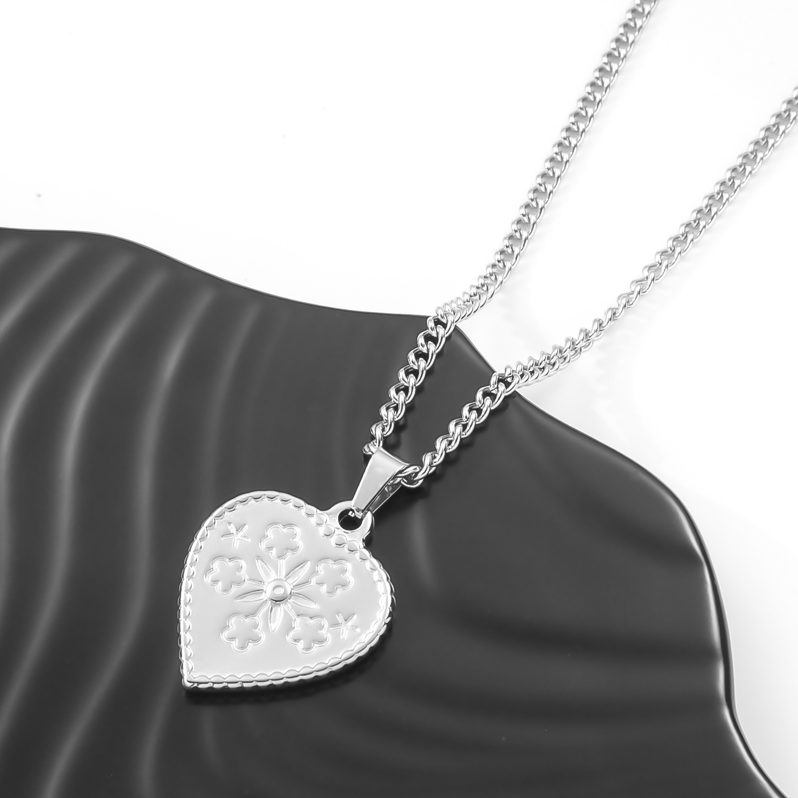 产品名称:春夏秋冬百搭不锈钢锁骨链心形雕花项链吊坠男女同款休闲冷淡配饰