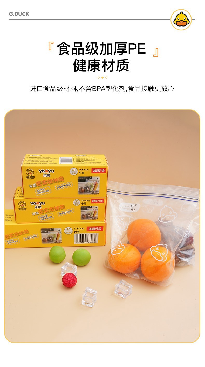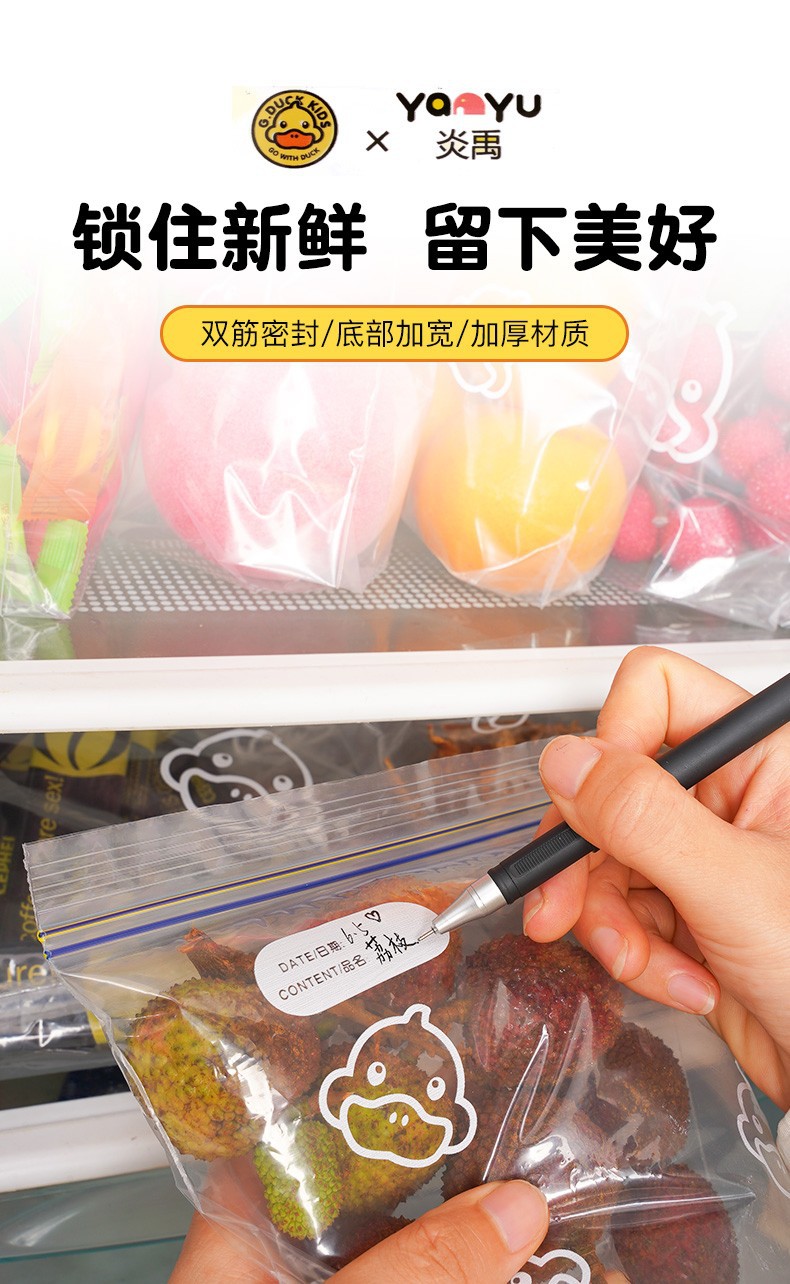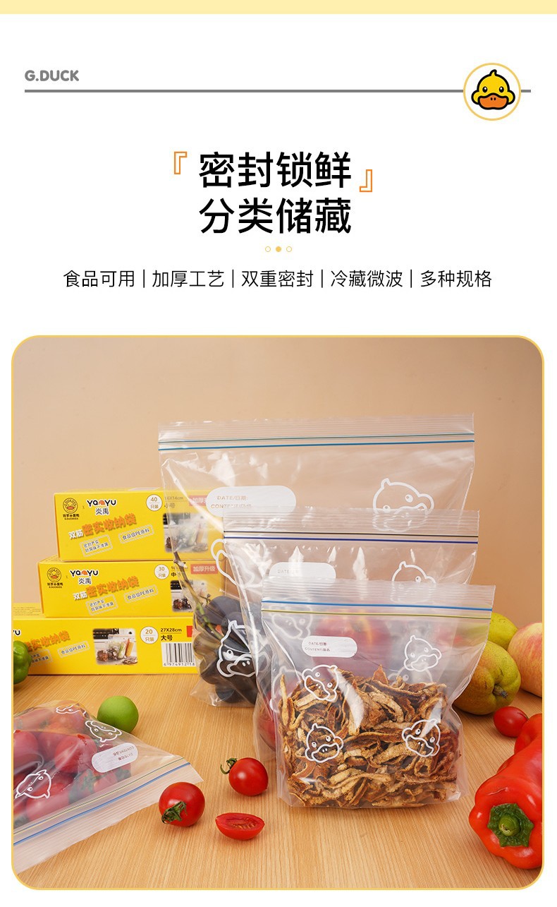 厚い小黄鴨密封袋果物野菜保存袋PEプラスチック冷蔵庫冷凍食品専用自封袋