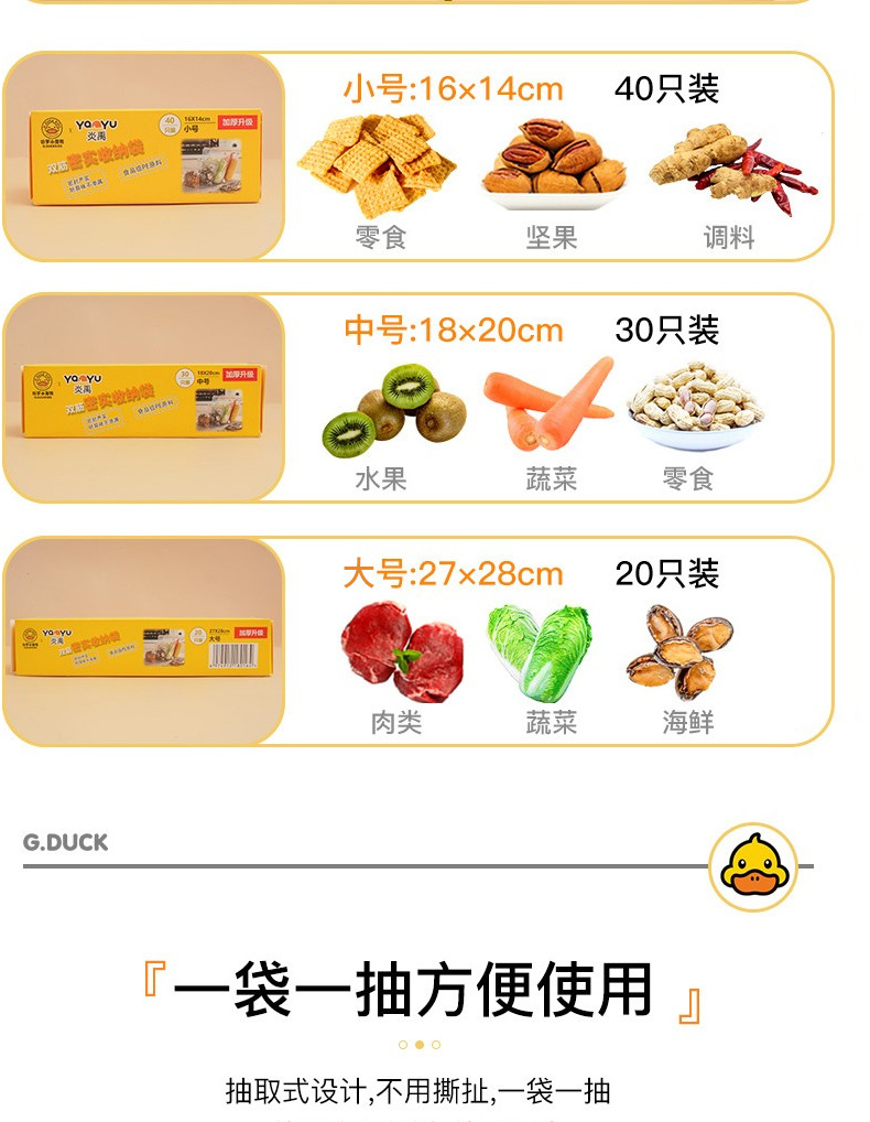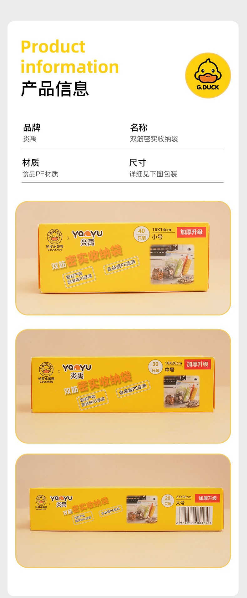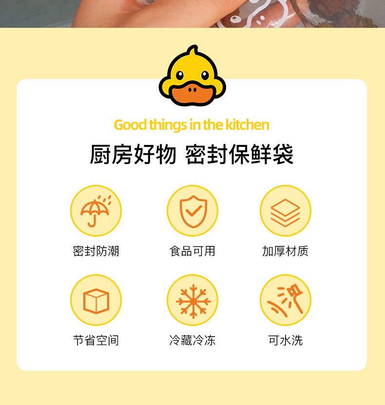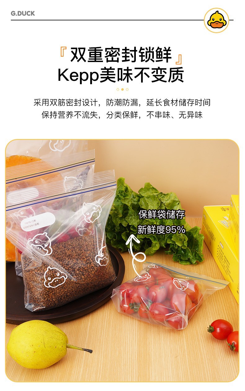 厚い小黄鴨密封袋果物野菜保存袋PEプラスチック冷蔵庫冷凍食品専用自封袋
