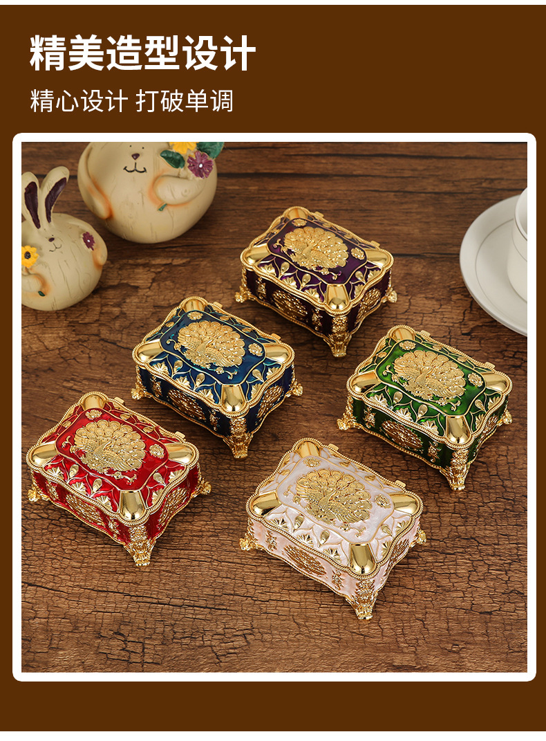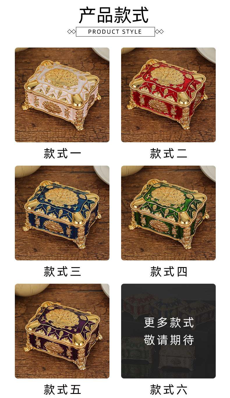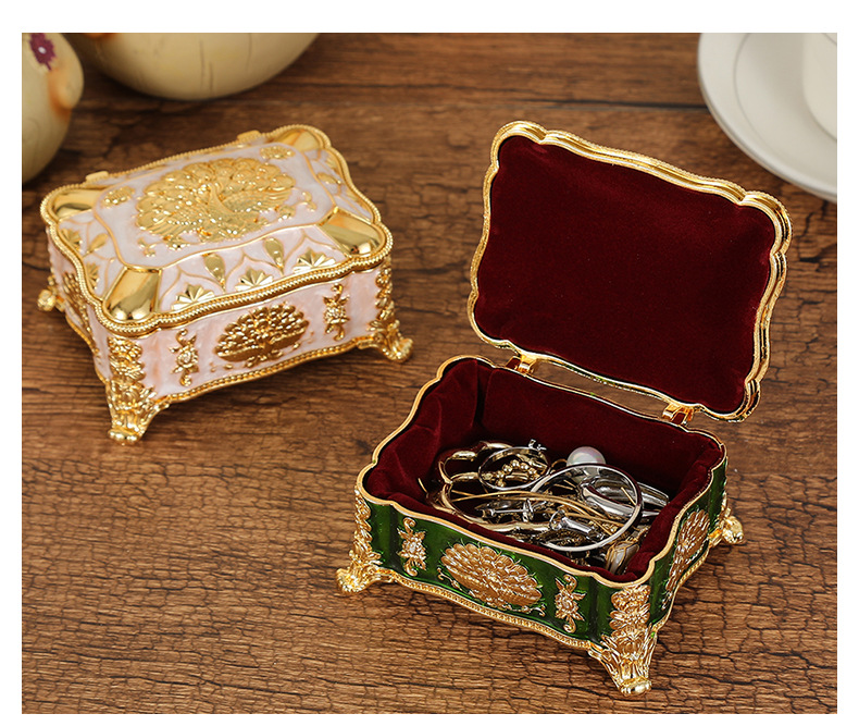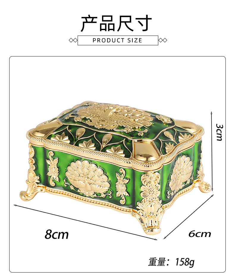 ホット販売金孔雀方形ジュエリーケースアルミ合金エナメルカラージュエリーケースミニイヤリング手作りメーカー代発