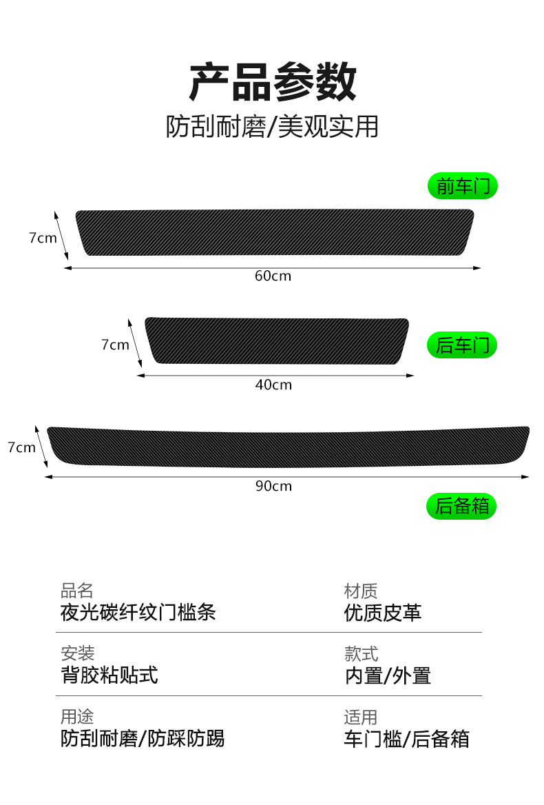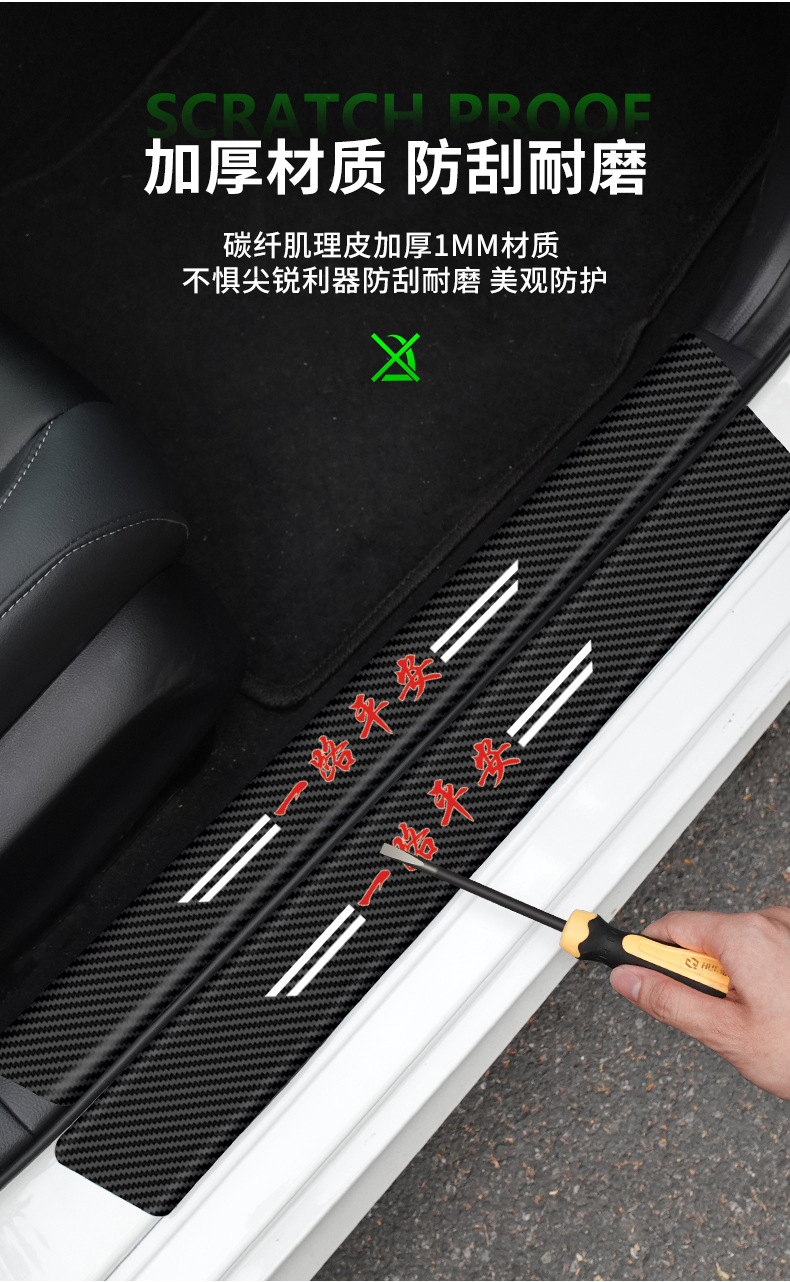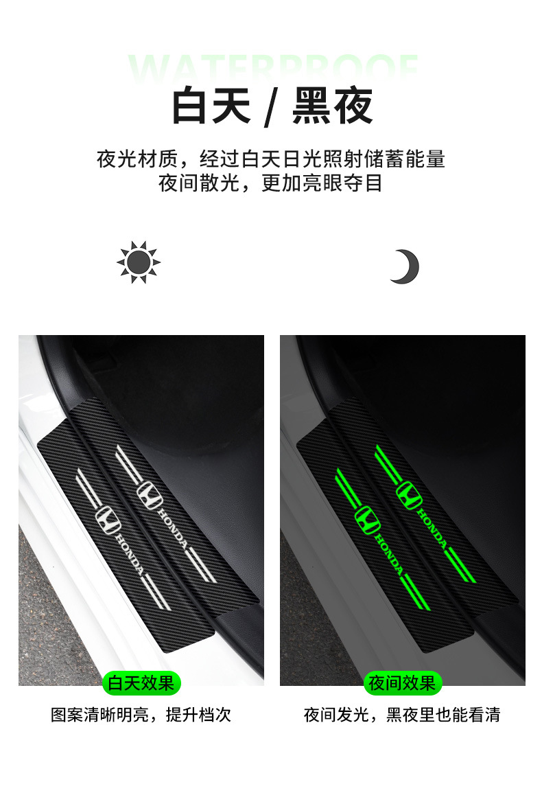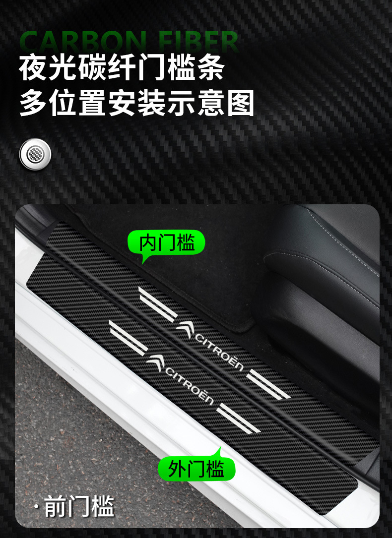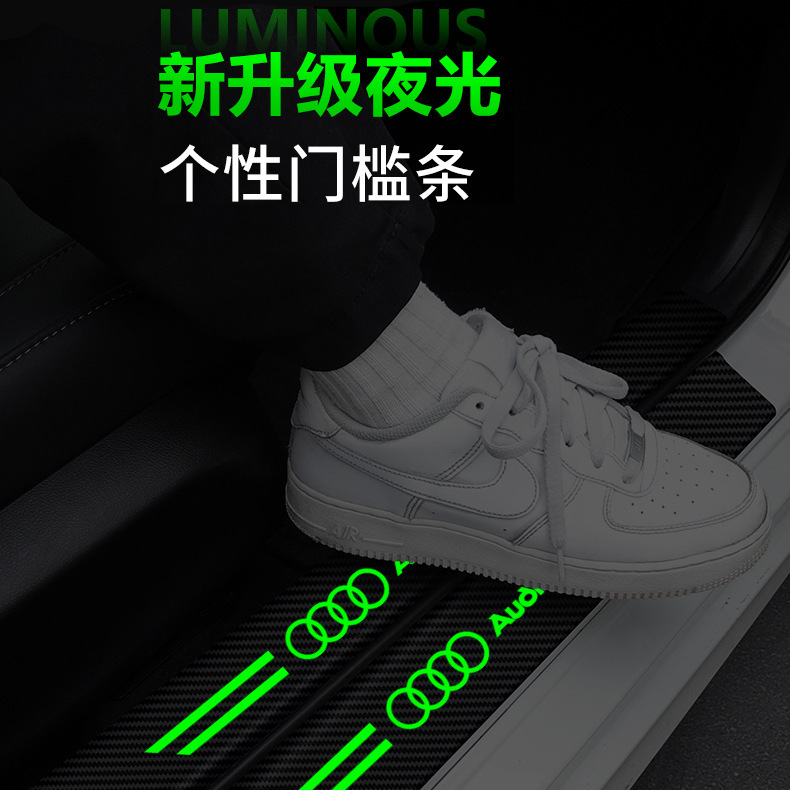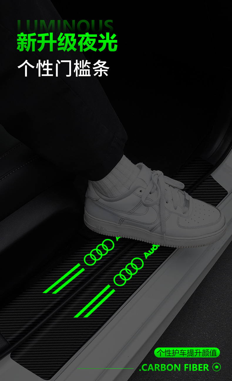 汽车门槛条夜光碳纤维贴纸车门保护贴防踩踏贴迎宾脚踏板装饰用品