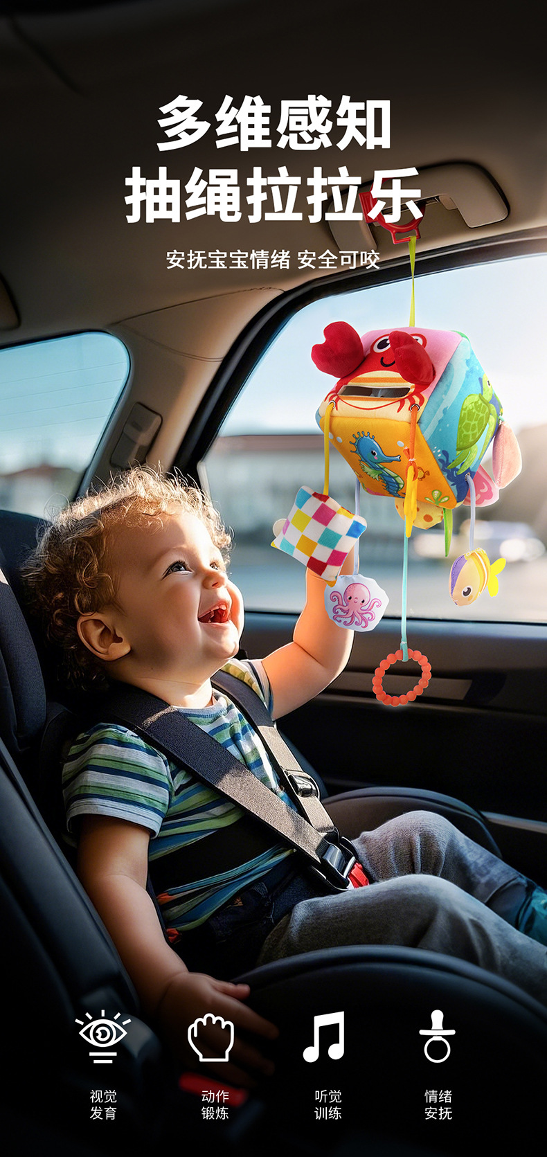 宝宝早教毛绒萌鸡抽抽乐婴儿推车摇铃挂件玩具新生儿抓握安抚床铃