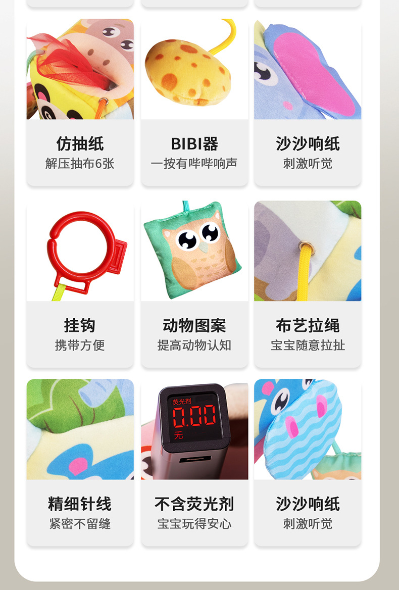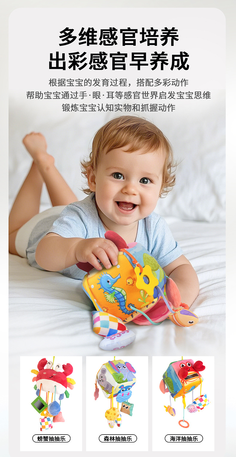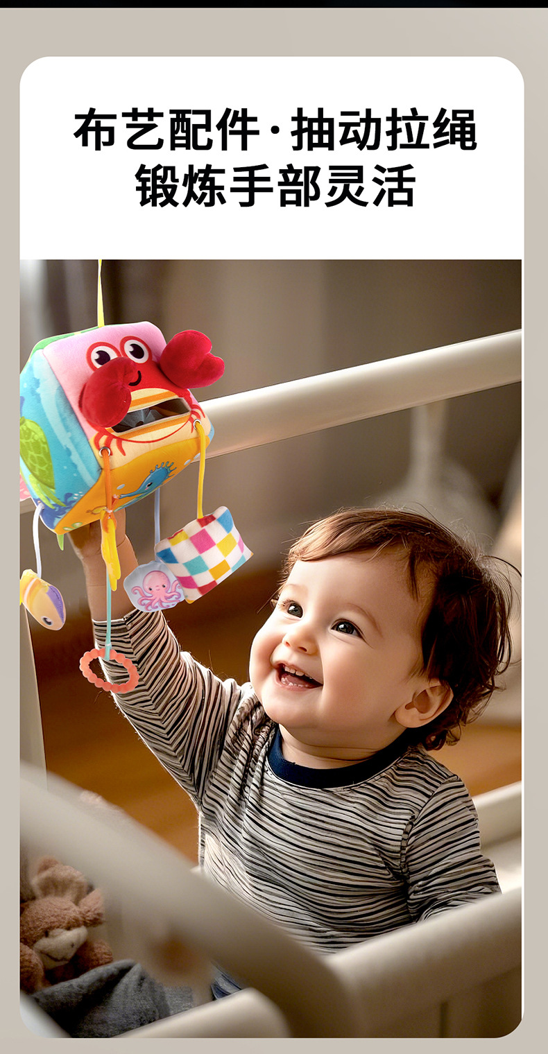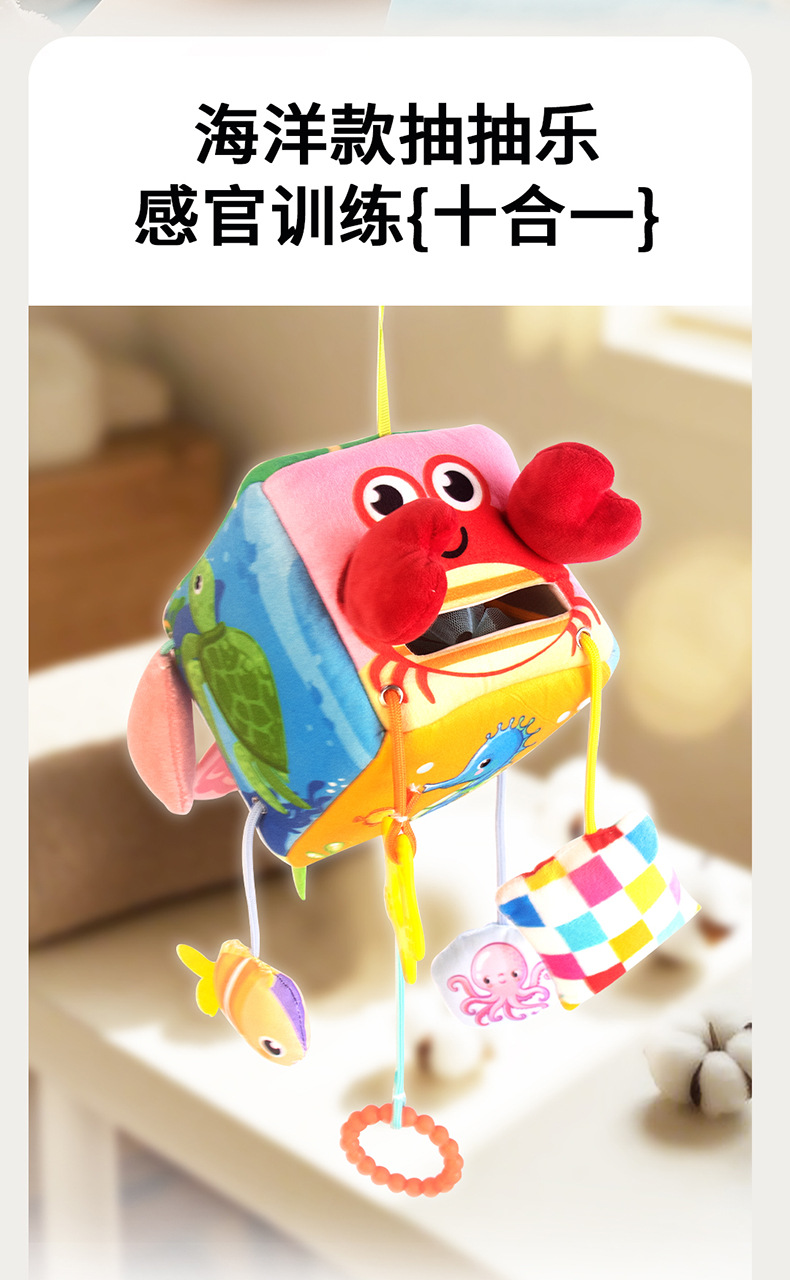 国境を越えた幼児用ベッドサイドベル、布製おもちゃ、赤ちゃん用カニの動物型おもちゃ、ティッシュペーパーを引くと音が鳴るおもちゃ