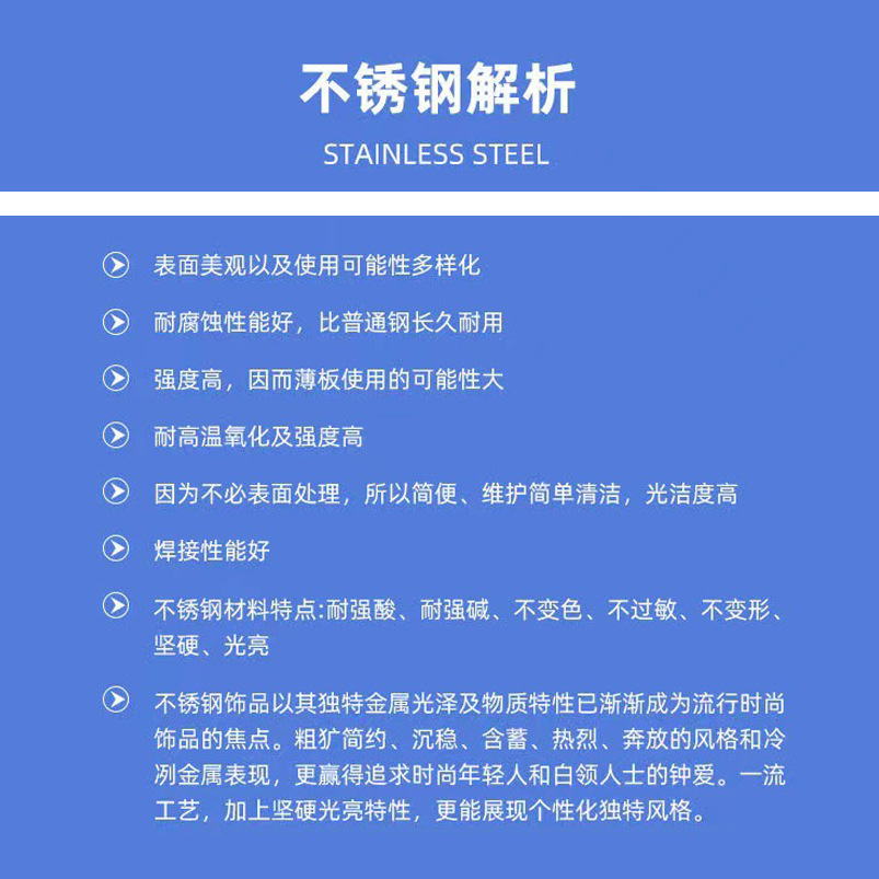 义务闪靓饰品专业生产加工不锈钢饰品,有不锈钢钥匙扣,不锈钢项链、手链、手镯、戒指、配件等饰品,有丰富的生产经验,专业的加工流程,支持来样定制,各种各种形状均可定做,我们有多个国家产品生产经验。厂家直销,量大价格从优!欢迎各界朋友前来洽谈业务。