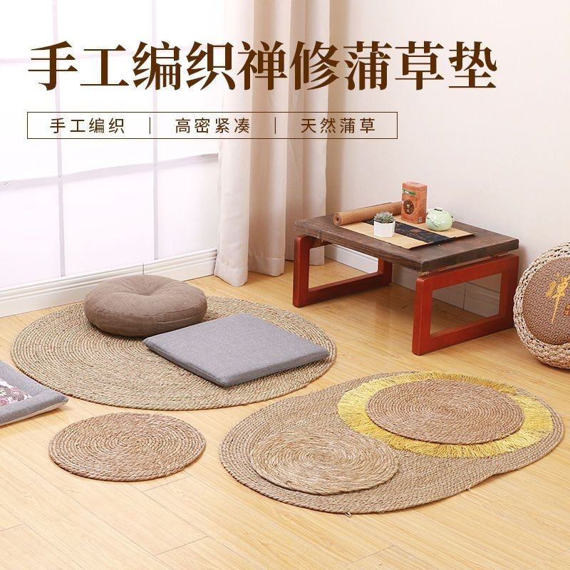 手作り籐わらマット、ススキ織り、寝室、ベッドサイド、リビングルーム、コーヒーテーブル、カーペット、円形写真装飾
