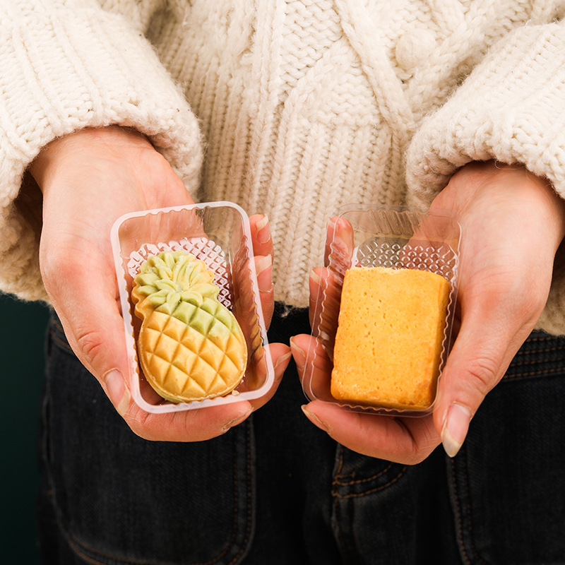 透明緑豆餅の底を厚くして鳳梨ショートニングトレイの甘いものを焼いて包装した手作り菓子のプラスチック箱