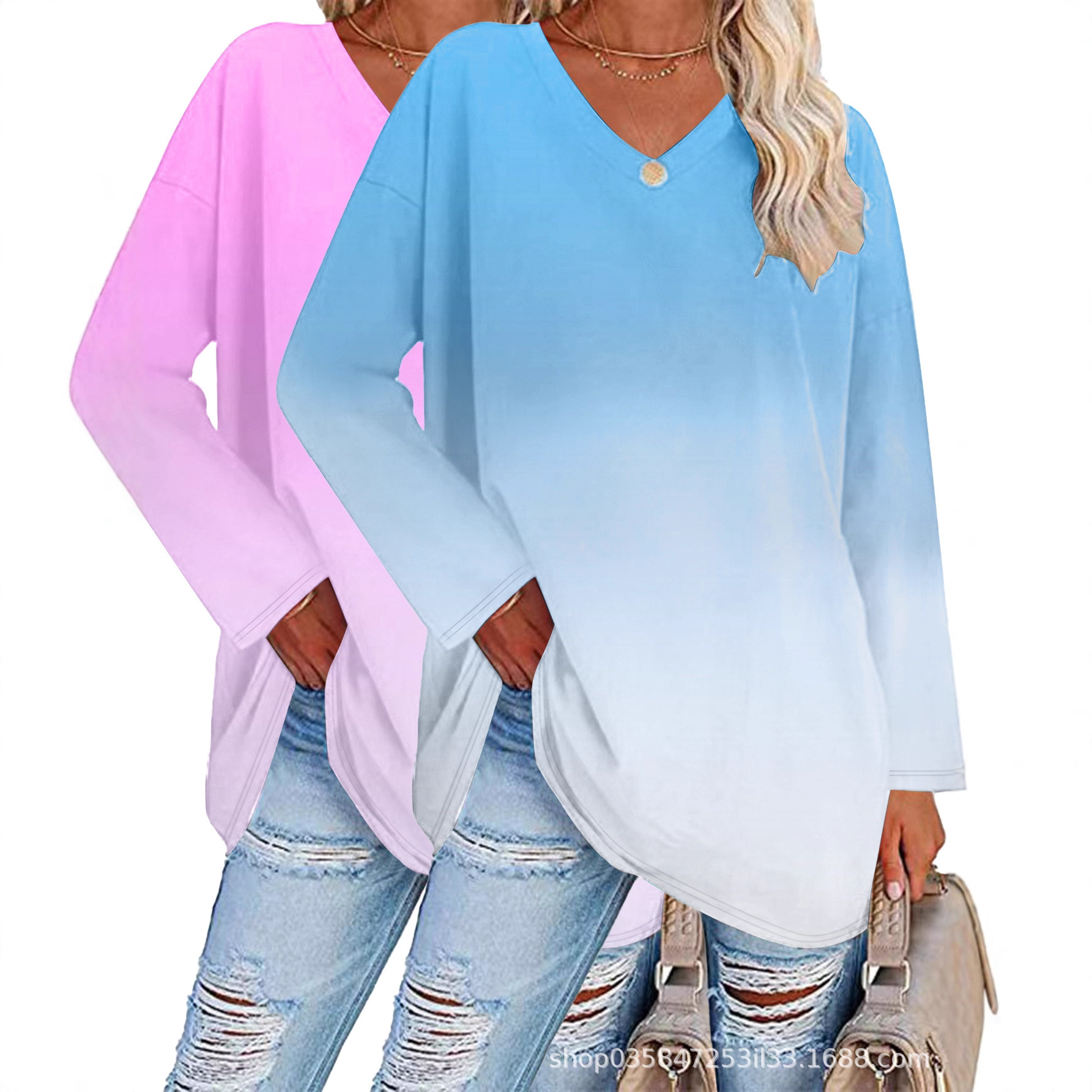 跨境欧美女装外贸春夏新款色宽松半袖V领女上衣