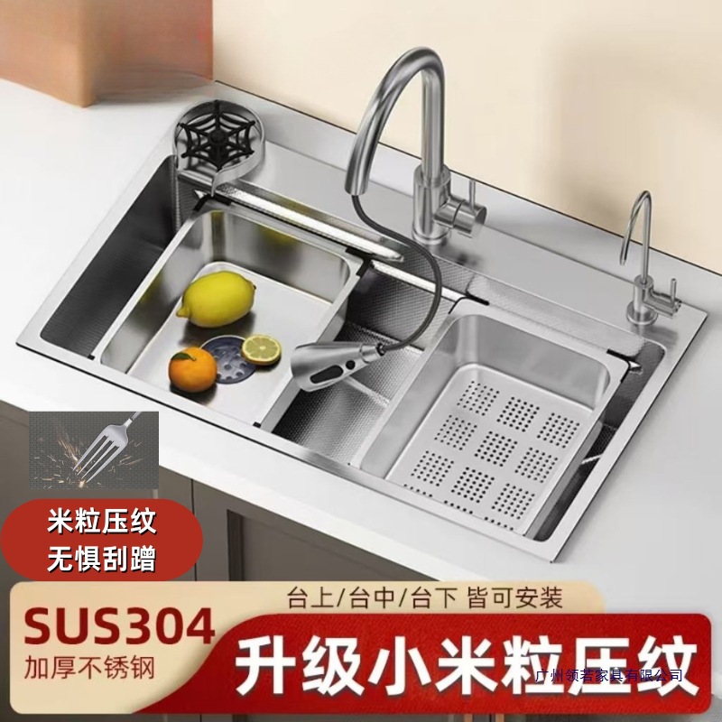 日本式厨房水槽大単槽304ステンレス水槽小米粒圧紋家庭用多機能洗面器