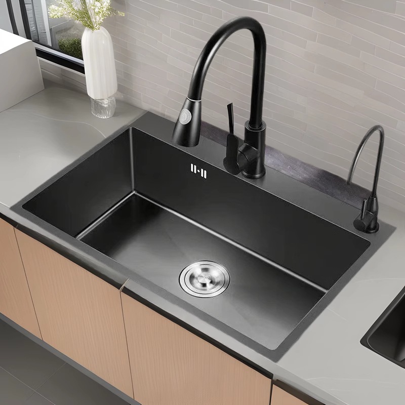 ナノガン グレーの厚みのあるキッチンシンク大型シングルスロット手作りステンレス鋼シンク家庭用アンダーカウンター食器洗いシンク