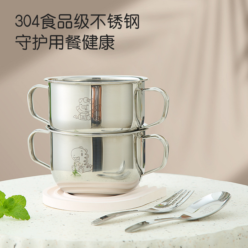 304ステンレス食品級児童ボウル家庭用転倒防止補助ボウルカード通ハンドル付きボウル両耳ボウル児童ボウル