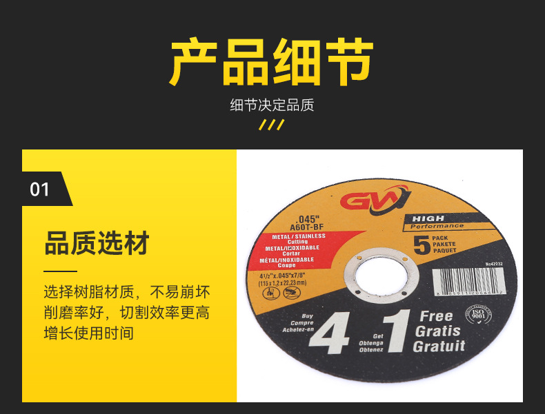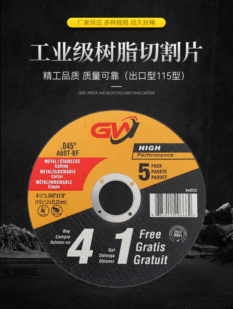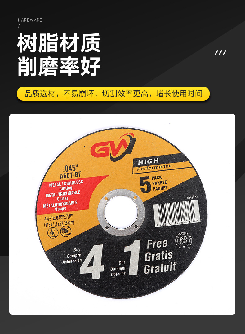 樹脂カッティングディスク 115 輸出タイプ ステンレス鋼専用カッティングディスク ダブルメッシュ樹脂カッティングディスク アングルグラインダー砥石