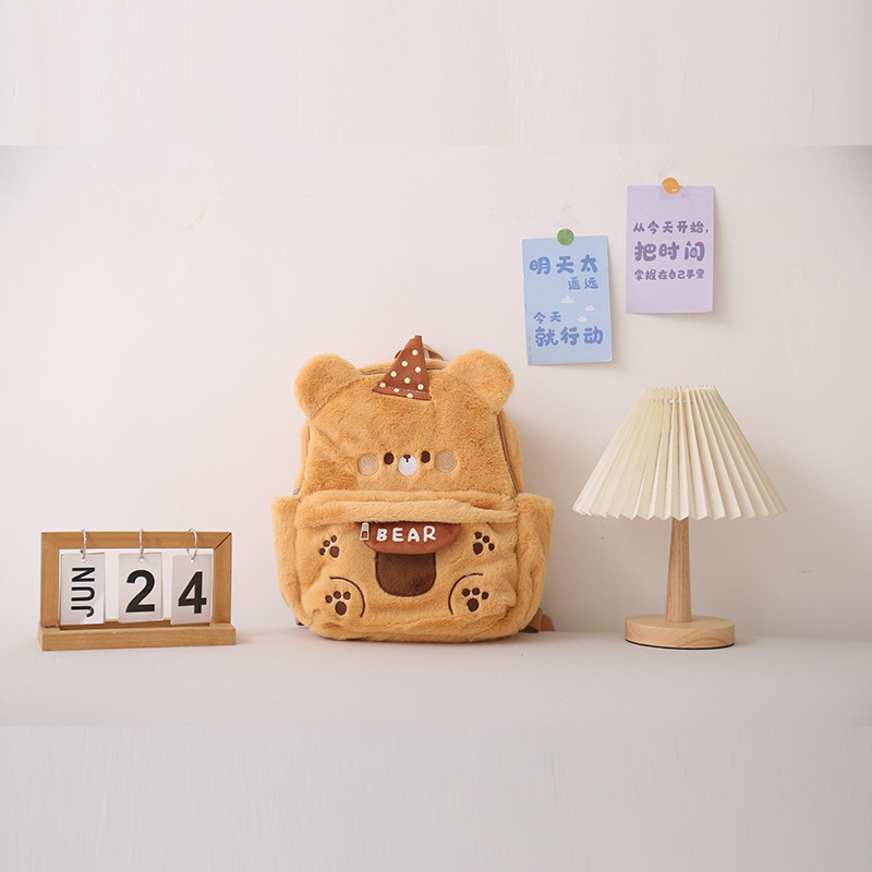 漫画風ぬいぐるみリュックサック、学生の通学用バックパック、在庫あり、かわいいクマのスクールバッグ、短毛ぬいぐるみ素材