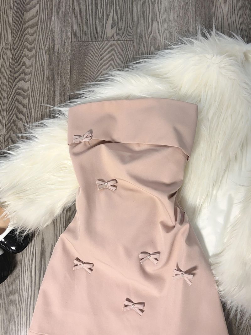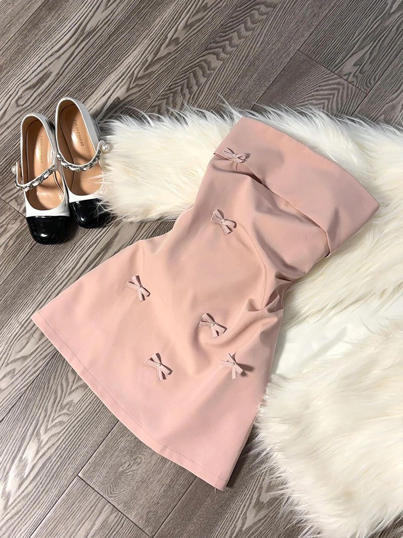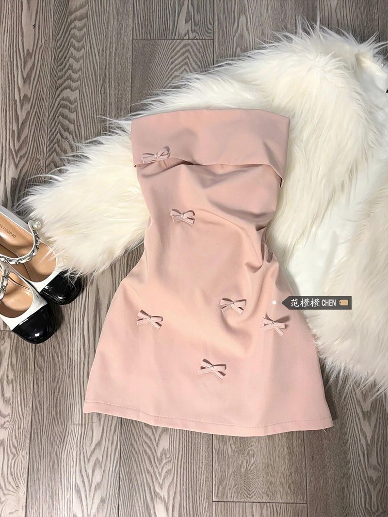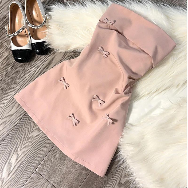 韓国系風ピンク立体蝶結びの胸のワンピース