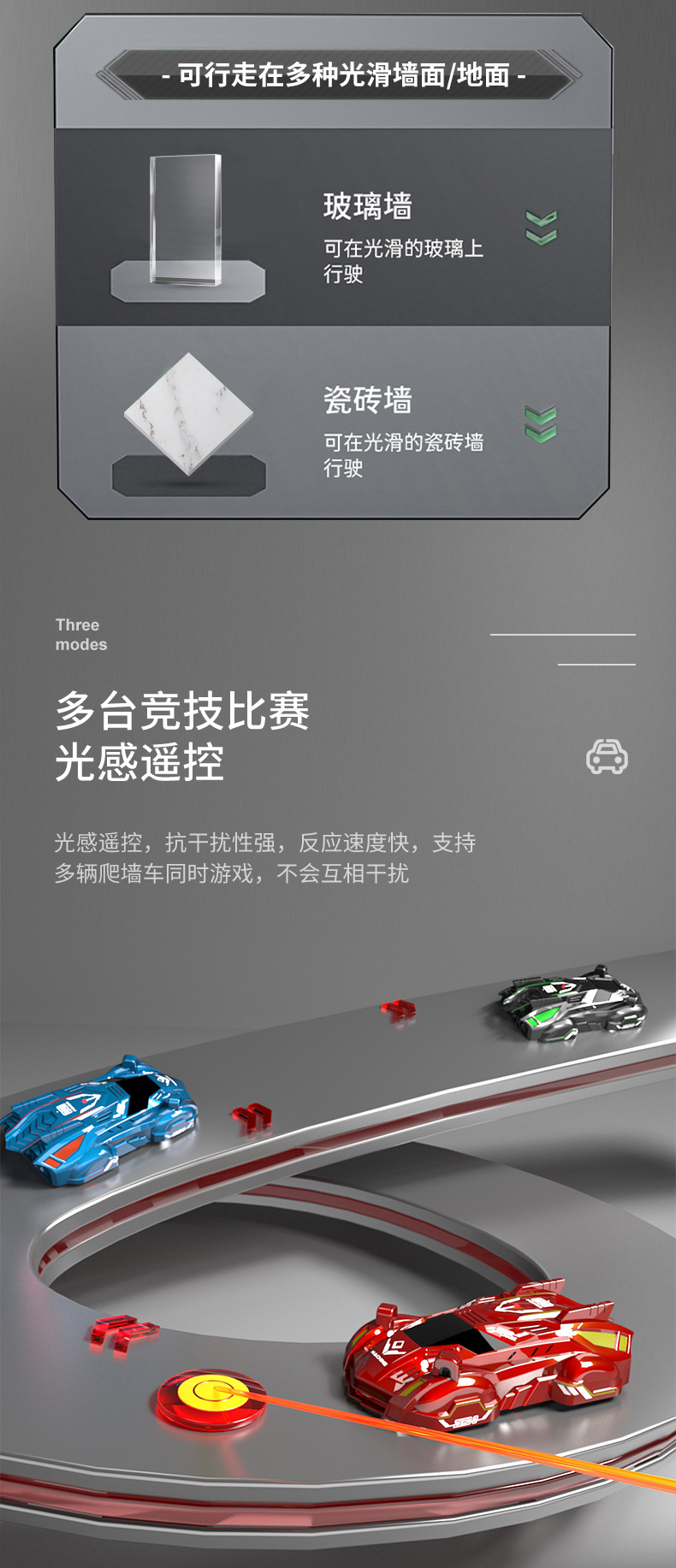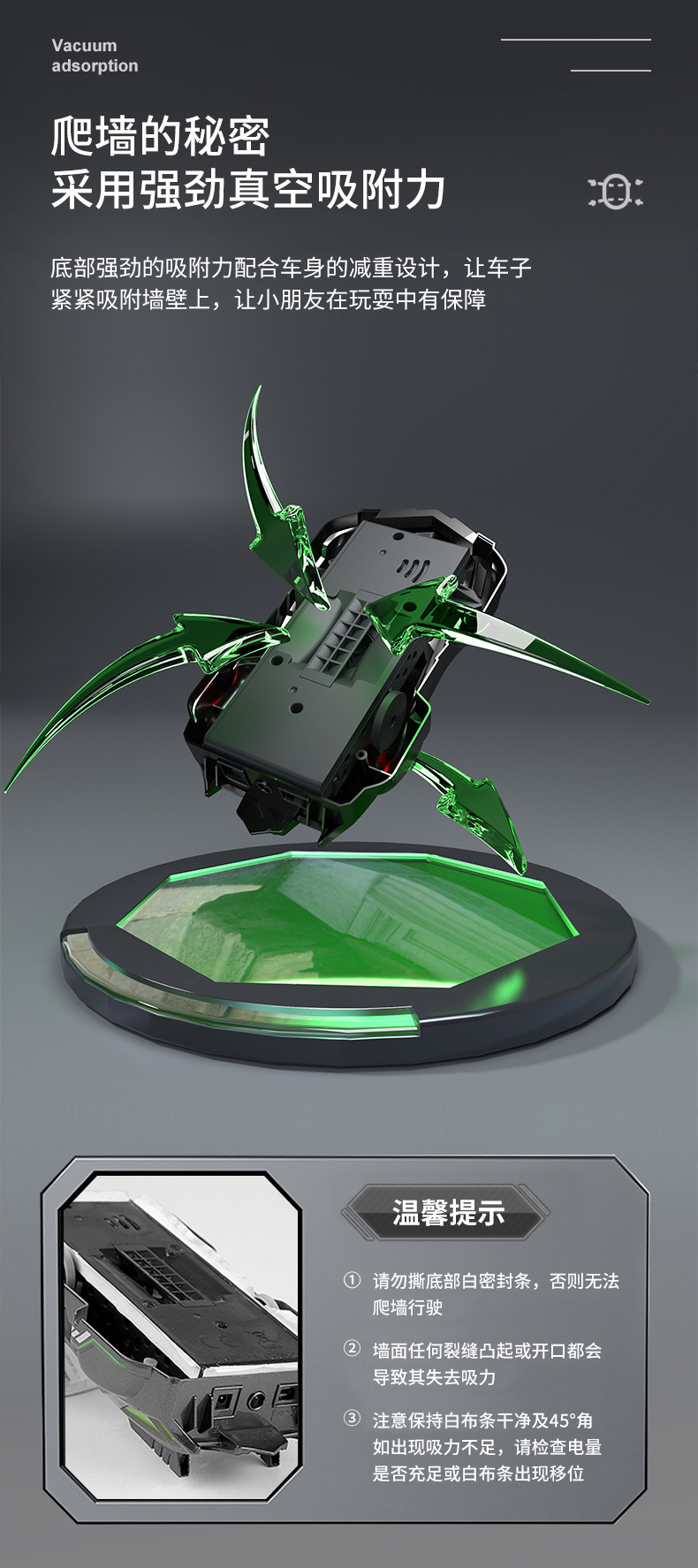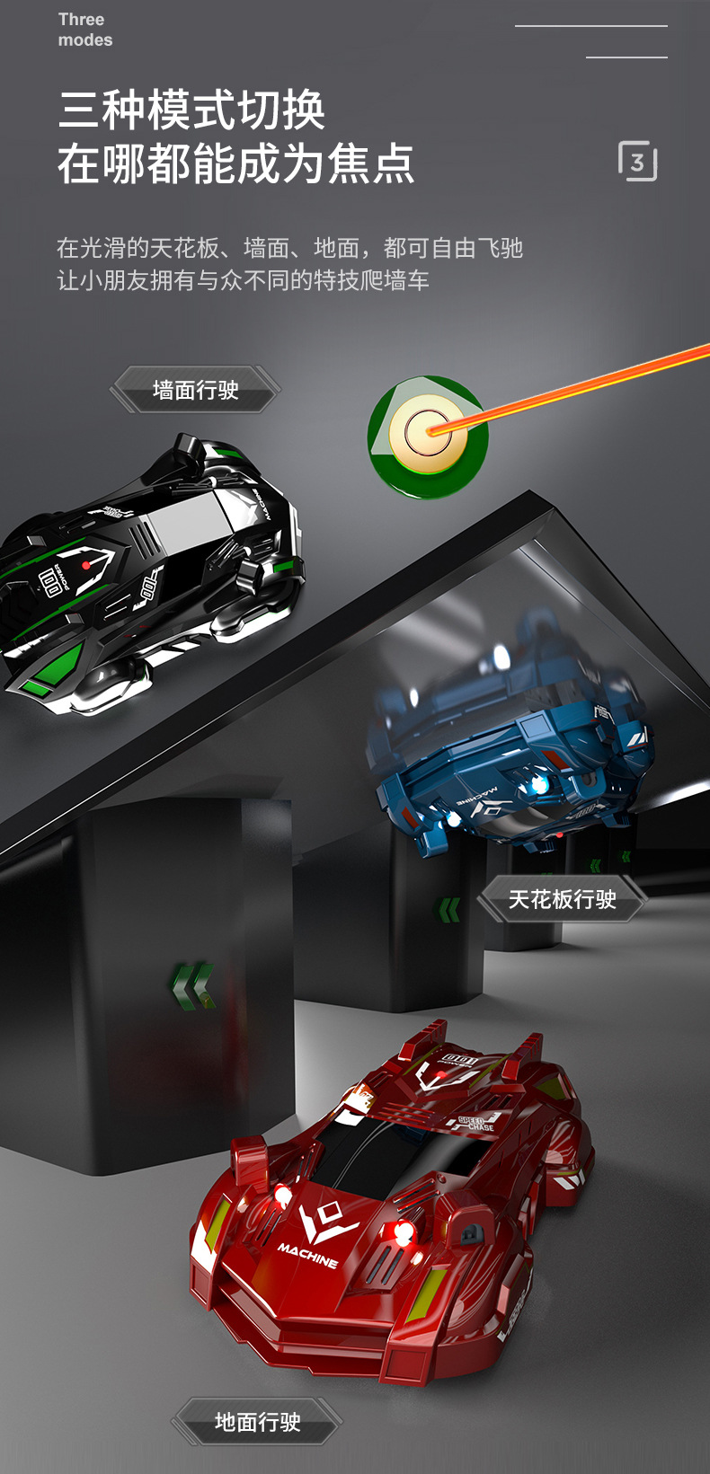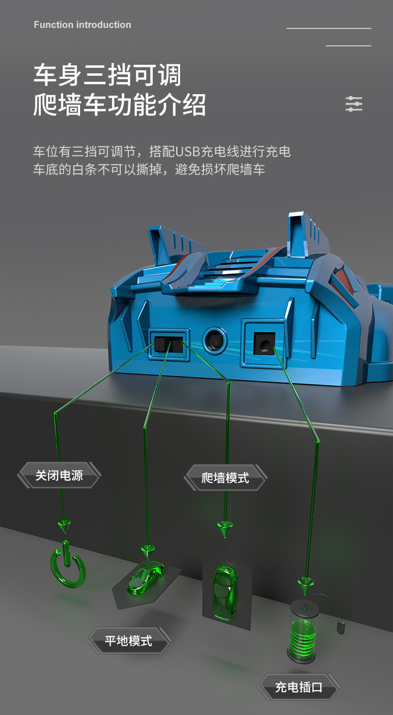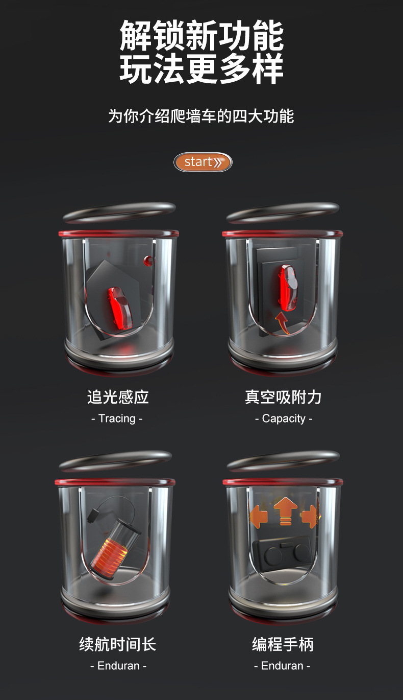 特色功能 玩具车可在墙壁以及天花板行走