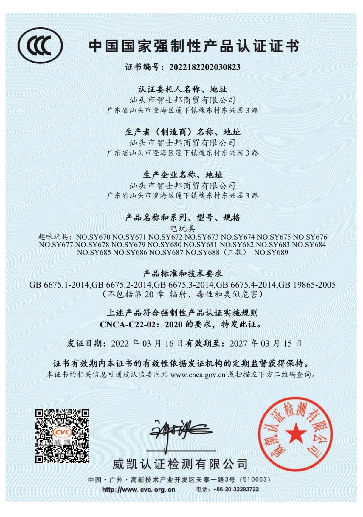 商品3C认证码 2022182202030823