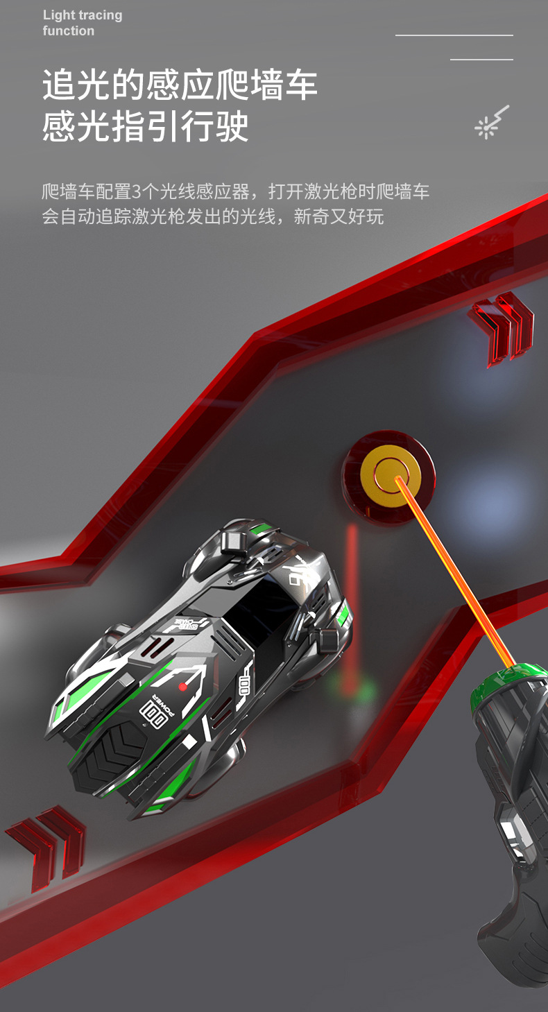 子供の光を追う壁登り車リモコン車レーザー吸壁赤外線壁スタントプログラミングレーシング少年おもちゃ