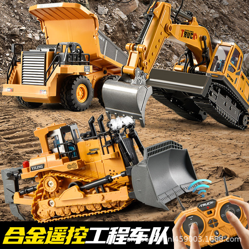 遥控挖掘机合金工程车玩具卡车大号十一通道钩机男孩儿童仿真跨境