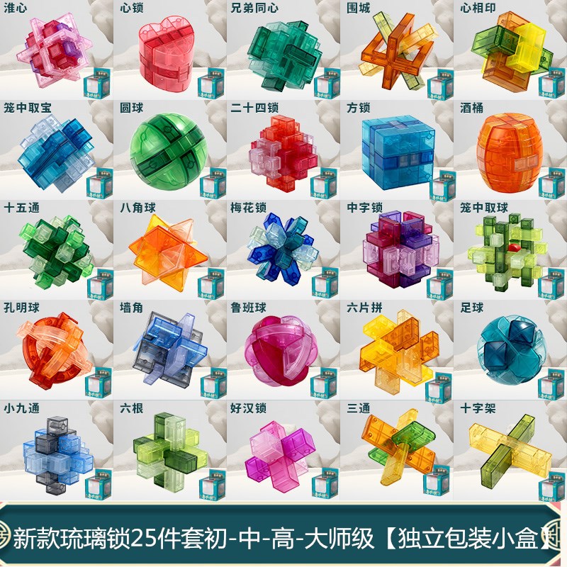 Sanrong Luban Lock 透明ガラスシリーズさまざまな難易度のパズル超難しい子供の教育孔明ロックおもちゃ
