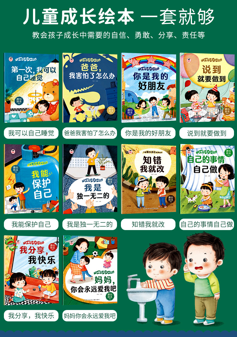 本物の子供の心温まる成長教育絵本、大きな絵と大きな文字、フルカラーのふりがな子供の成長読書絵本