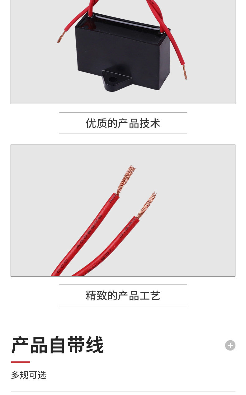 CBB61コンデンサ1.5uf2uf2.5uf3uf3.5uf、ワイヤ付きファンコンデンサCBB61、高効率起動