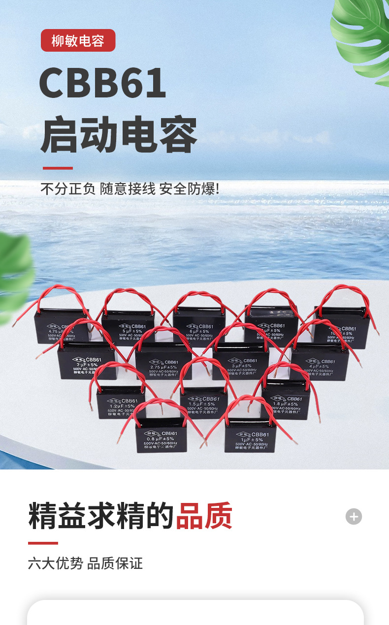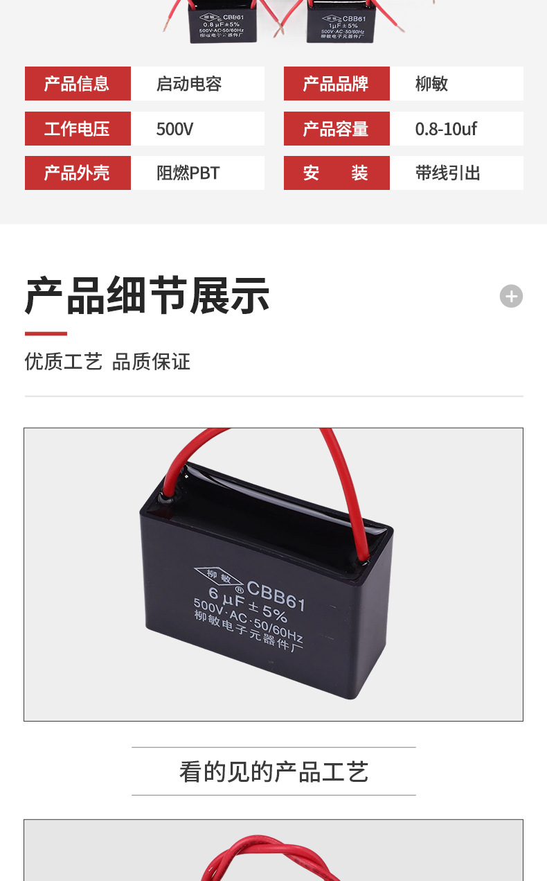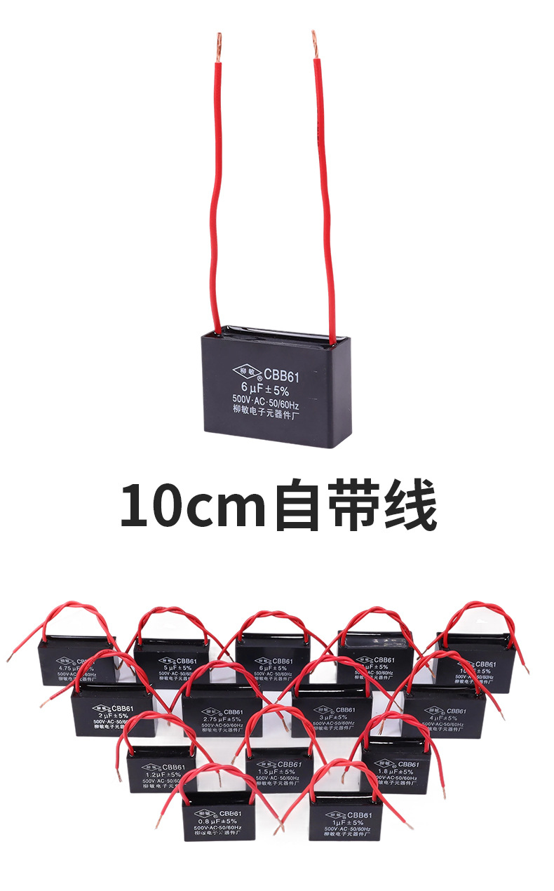 标称容量 柳敏CBB61-0.8UF(500V),柳敏CBB61-1UF(500V),柳敏CBB61-1.2UF(500V),柳敏CBB61-1.5UF(500V),柳敏CBB61-1.8UF(500V),柳敏CBB61-2UF(500V),柳敏CBB61-2.5UF(500V),柳敏CBB61-2.75UF(500V),柳敏CBB61-3UF(500V),柳敏CBB61-4UF(500V),柳敏CBB61-4.75UF(500V),柳敏CBB61-5UF(500V),柳敏CBB61-6UF(500V),柳敏CBB61-8UF(500V),柳敏CBB61-10UF(500V),柳敏CBB61-20UF(500V)