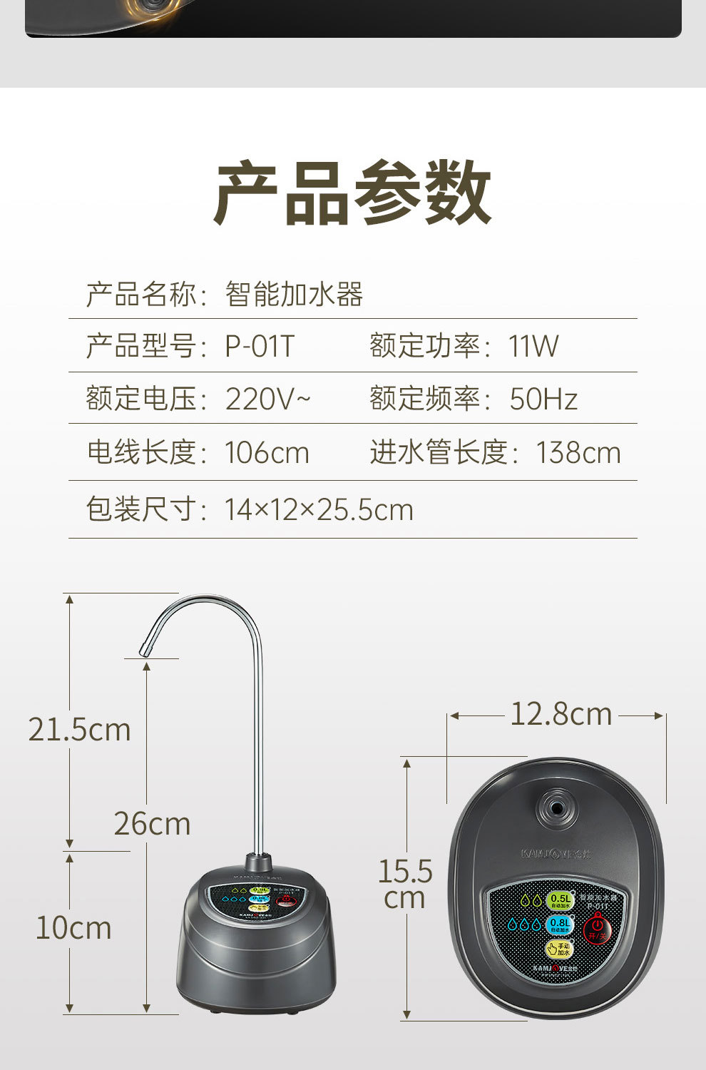 Jinzao P-01T 自動給水ポンプ ボトル入り水自動インテリジェント給水吸引給水器家庭用
