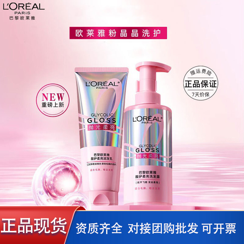 欧莱雅酸护柔亮粉晶晶洗发水护发素洗护套装改善干枯毛躁受损补水