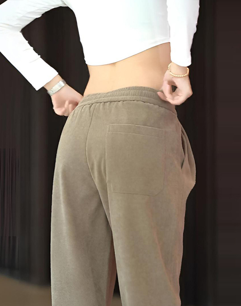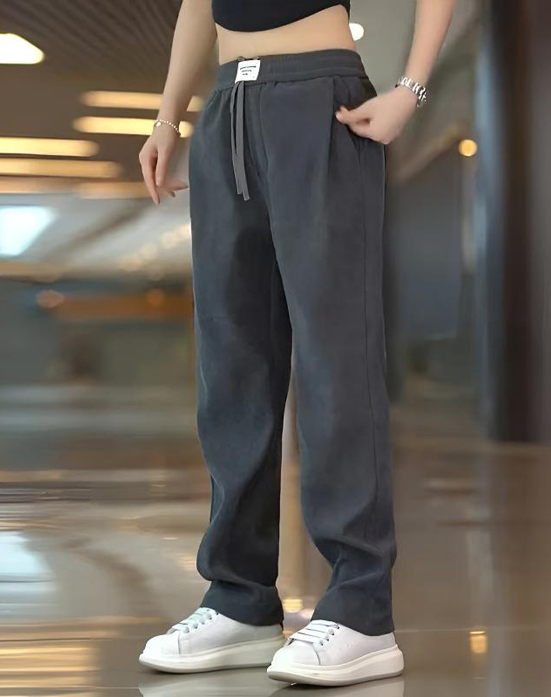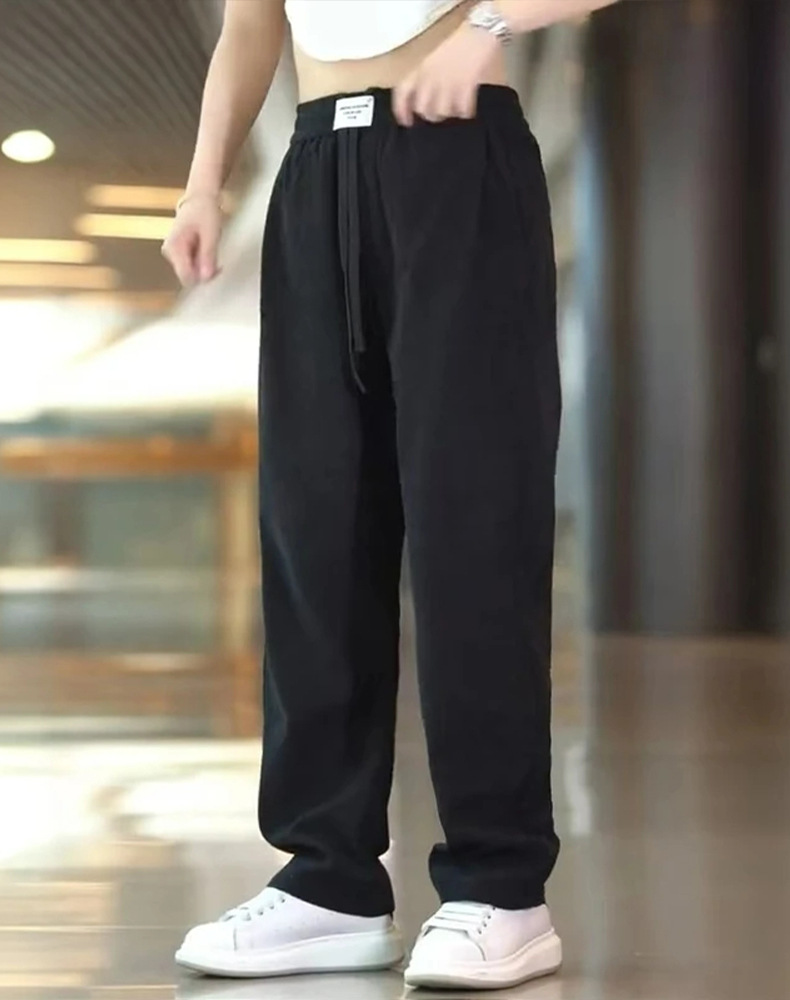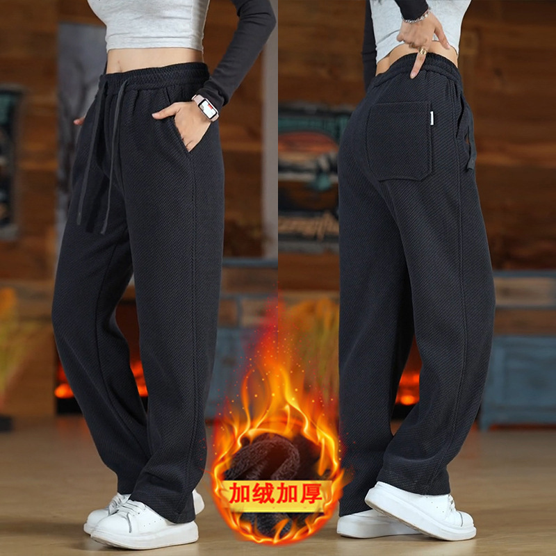 秋冬加绒休闲裤新款男士宽松直筒裤2025运动时尚帅气松紧腰长裤