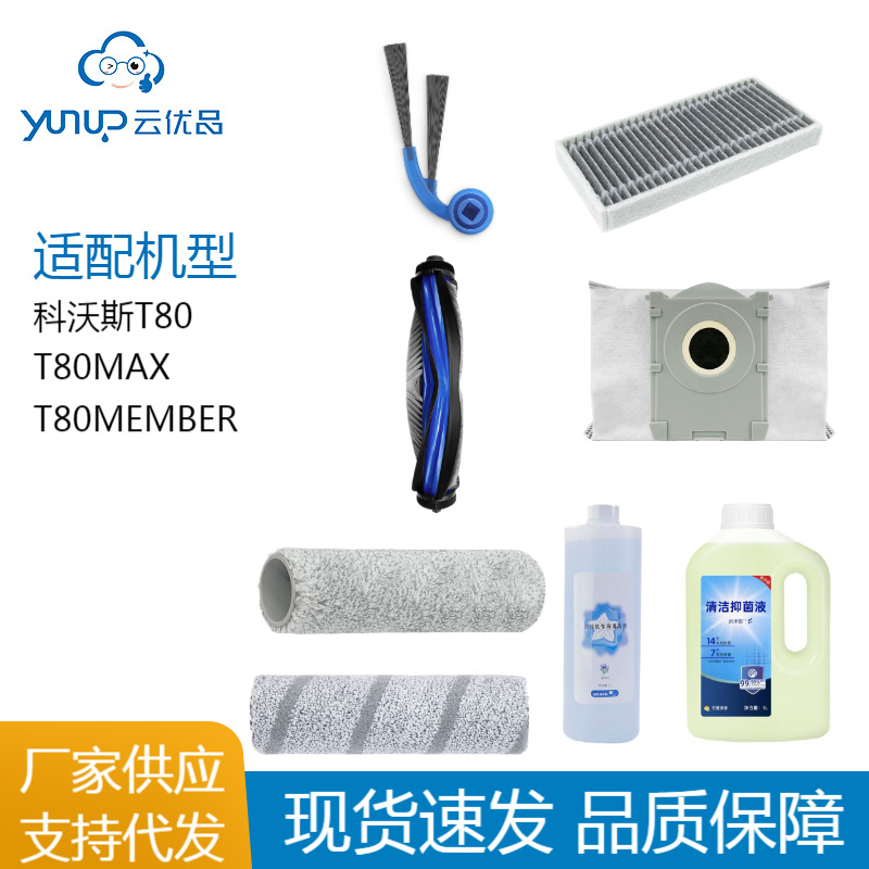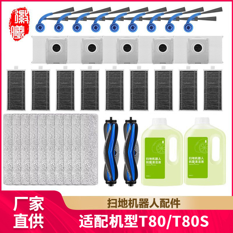 适配科沃斯t80耗材扫地机器人配件滚边刷拖抹布滤网清洁液集尘袋
