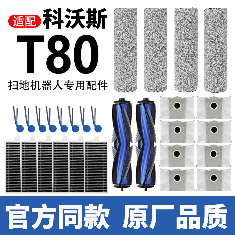 适用科沃斯T80S扫地机耗材配件滚筒清洁液边滚刷滤芯集尘袋DEX62