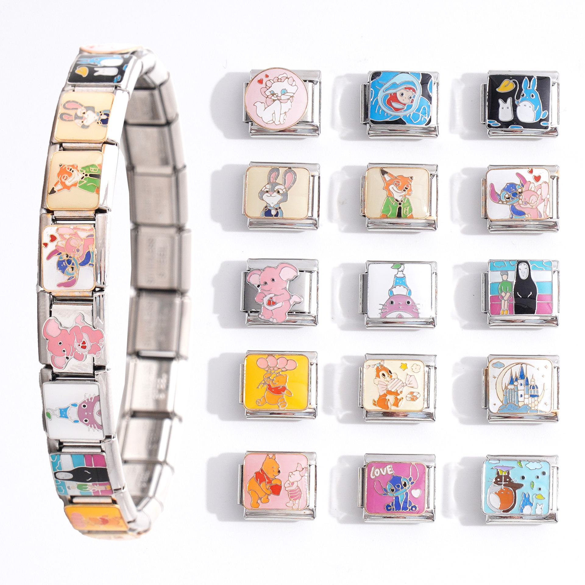 新しいクロスボーダーイタリアモジュールブレスレットアニメーションリンクシリーズステンレス鋼取り外し可能な DIY ブレスレットチェーン卸売