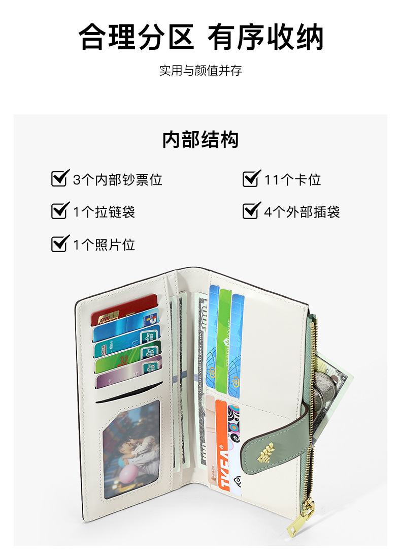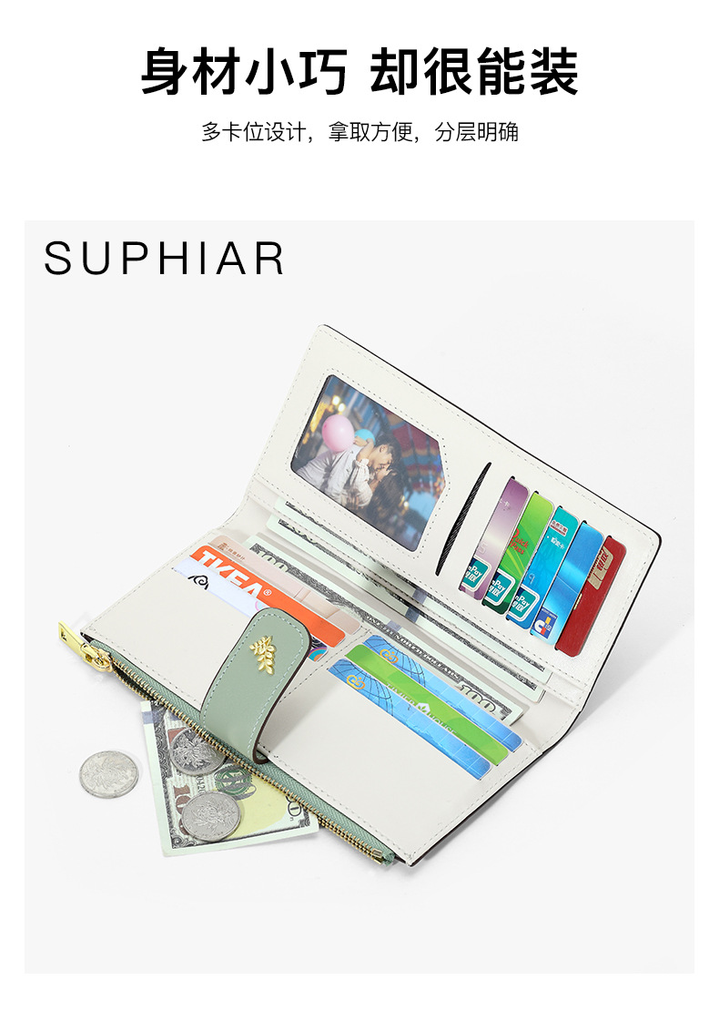 跨境爆款二折拉链零钱包pu多功能钱包卡包一体高级感长款女士钱包