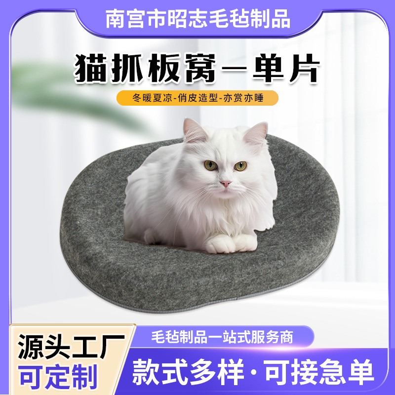在庫あり 卸売 シングルピース 猫スクラッチボード 耐摩耗性、耐傷性、欠けにくい 楕円形猫スクラッチボード 猫の巣 一体型フェルト猫の巣