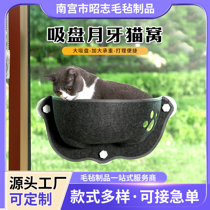卸売りは直接に吸盤の三日月猫の巣の新型の猫のハンモックのアイデアの異形の動物のハンモックのフェルトのペット用品を供給します。