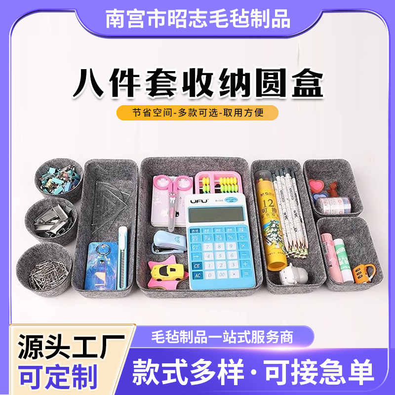メーカー卸売8点セットフェルト収納ボックス丸型リビングルームデスクトップ家庭用引き出し収納手作り