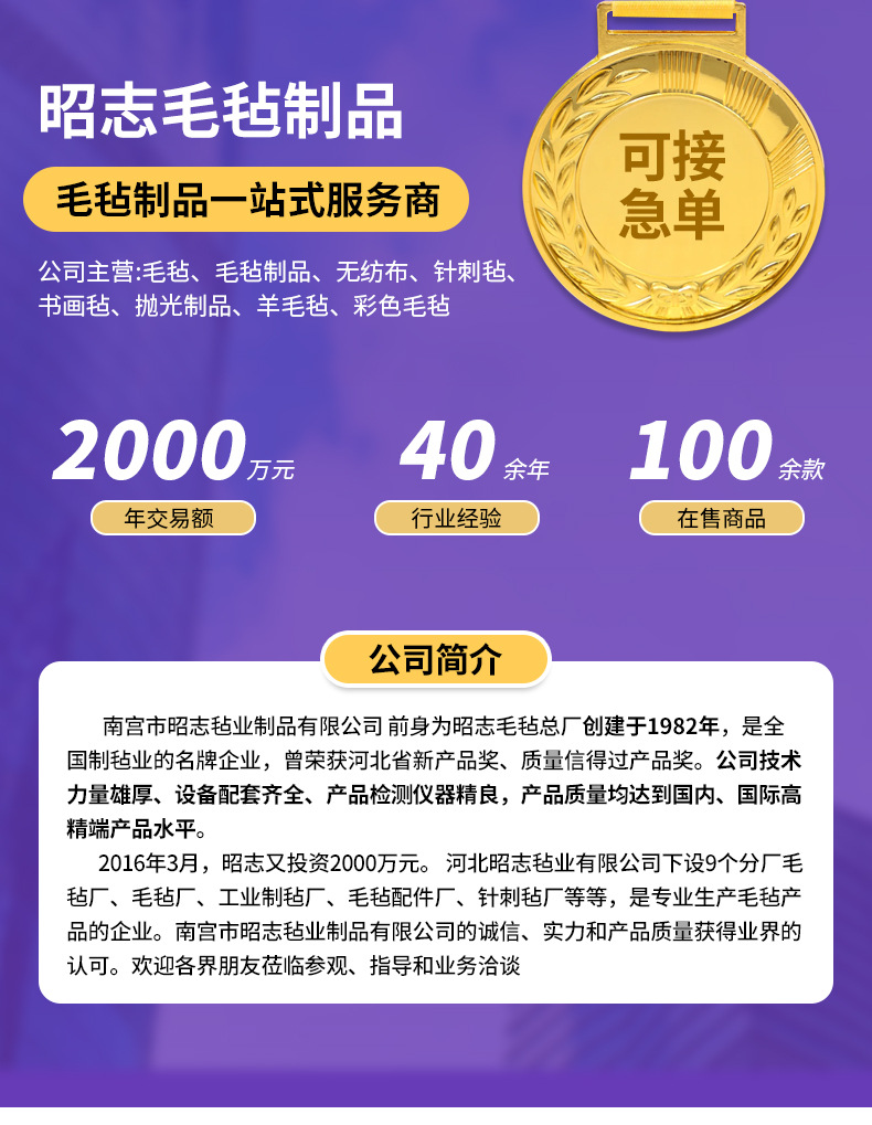 メーカーはカラーフェルト、粘着裏地付きフェルト、DIY手作り不織布、遮音フェルト、冷圧専用カスタム品を供給しています。