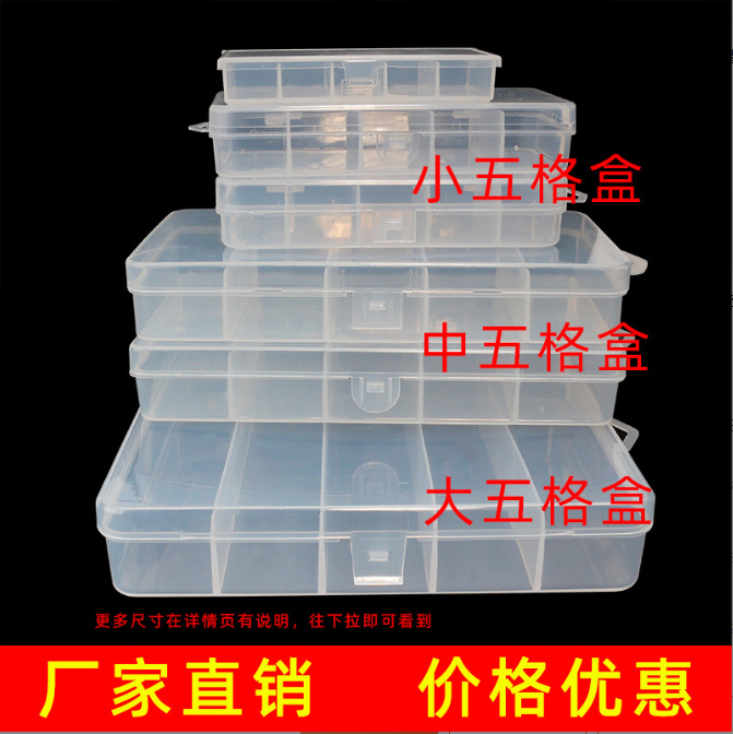 路亜五格箱路亜餌箱透明釣りプラスチック餌箱黒透明大中小装飾品収納箱
