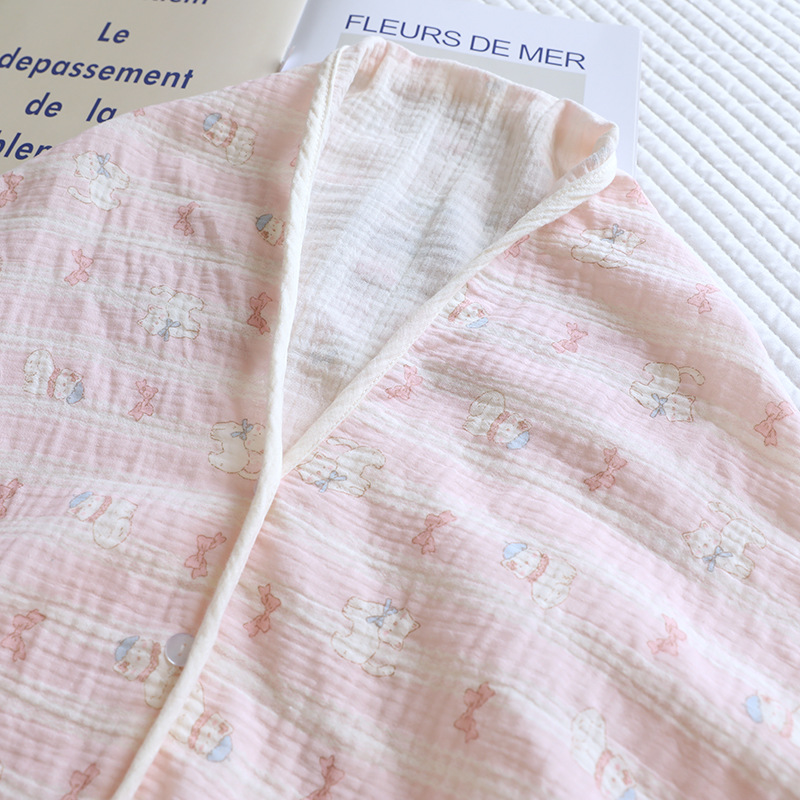 国の風の色は純綿の寝衣の女性の二重ガーゼの復古のジャカードの漢服の着物の家庭の浴衣の春と秋はゆったりしています。