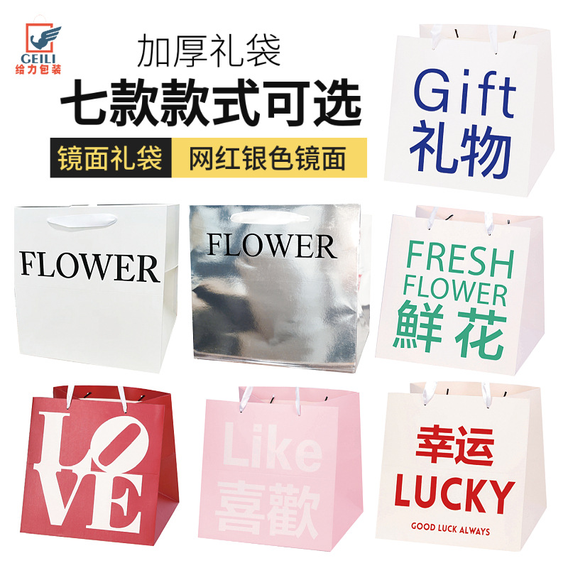 ギフトバッグクロスボーダー花柄紙袋お土産手提げ袋リボン付き祝日プレゼント服包装袋