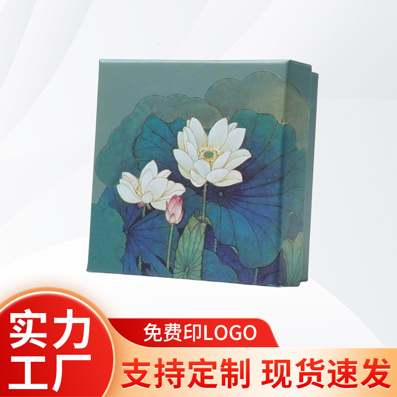 水墨风荷花首饰包装盒礼品盒戒指吊坠耳钉收纳纸盒子天地盖海绵