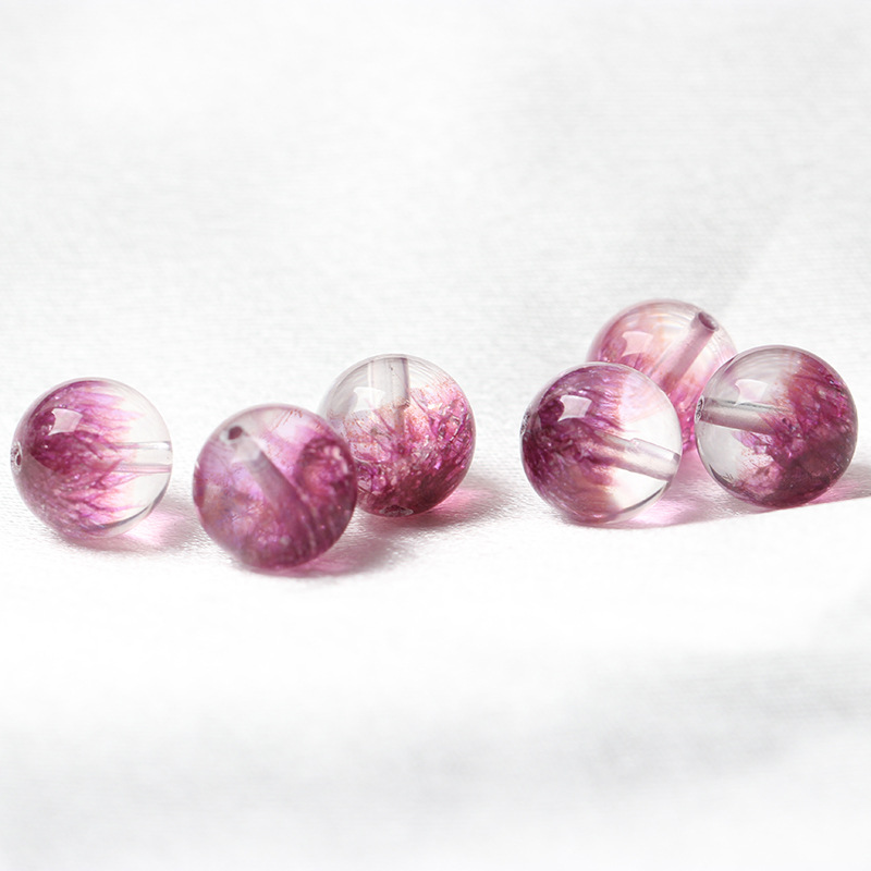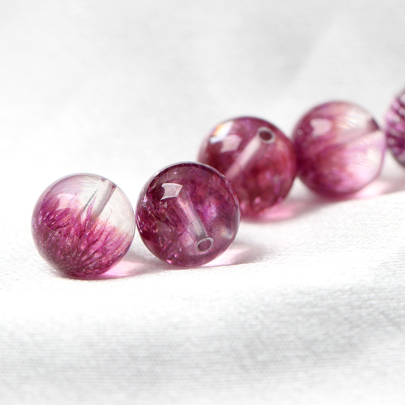 天然幻紫幽霊散珠紫水晶紫チタン結晶円珠diy九紫離火ブレスレット手串部品