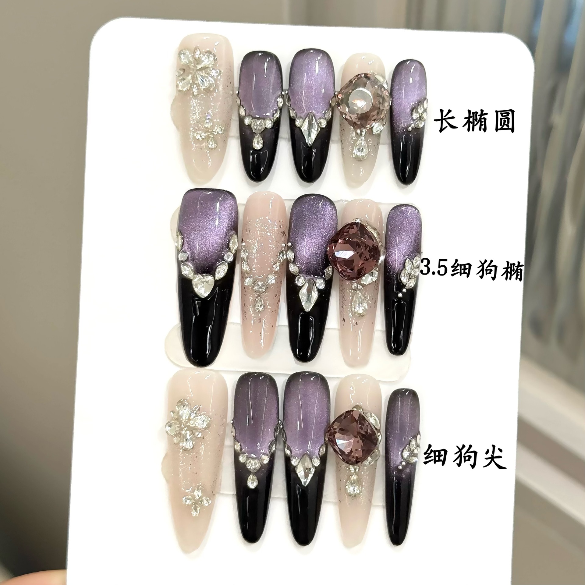艺禾穿戴甲【帕帝拉】秋冬氛围感御姐风爆闪魅影紫猫眼手工穿戴甲