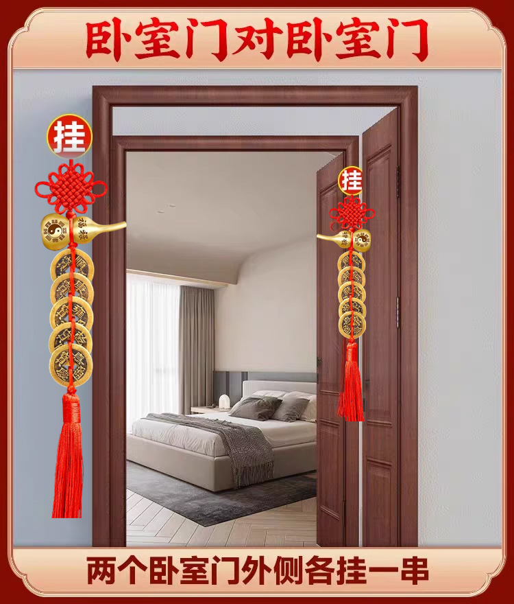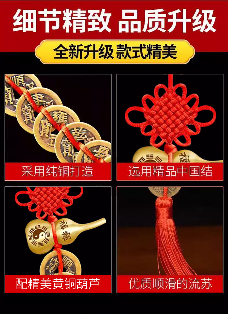 加厚五帝铜钱铜葫芦装朱砂五帝钱一串门对门挂件红绳中国结挂饰