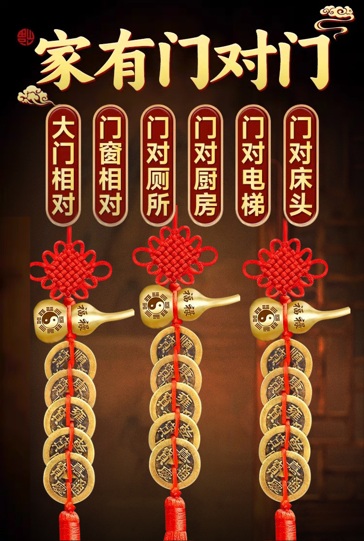 五帝銭門対門瓢箪ストラップ門対隣門真品純真鍮吉祥結び飾り引っ越しプレゼント