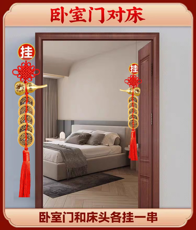 ドアのドアの銅のヒョウタンの五帝のお金は寝室の客間の梁を掛けて吉祥を押さえて福禄の銅のお金を結びます。