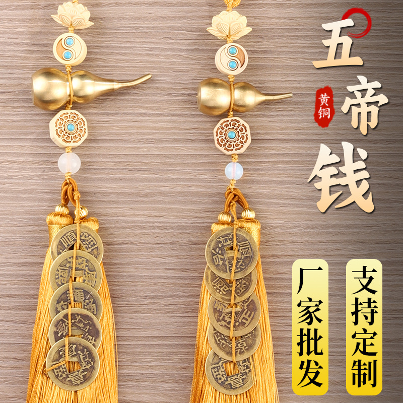純銅瓢箪五帝銭中国結流蘇ストラップ解決ドアドア人財二旺家用中国結吉祥