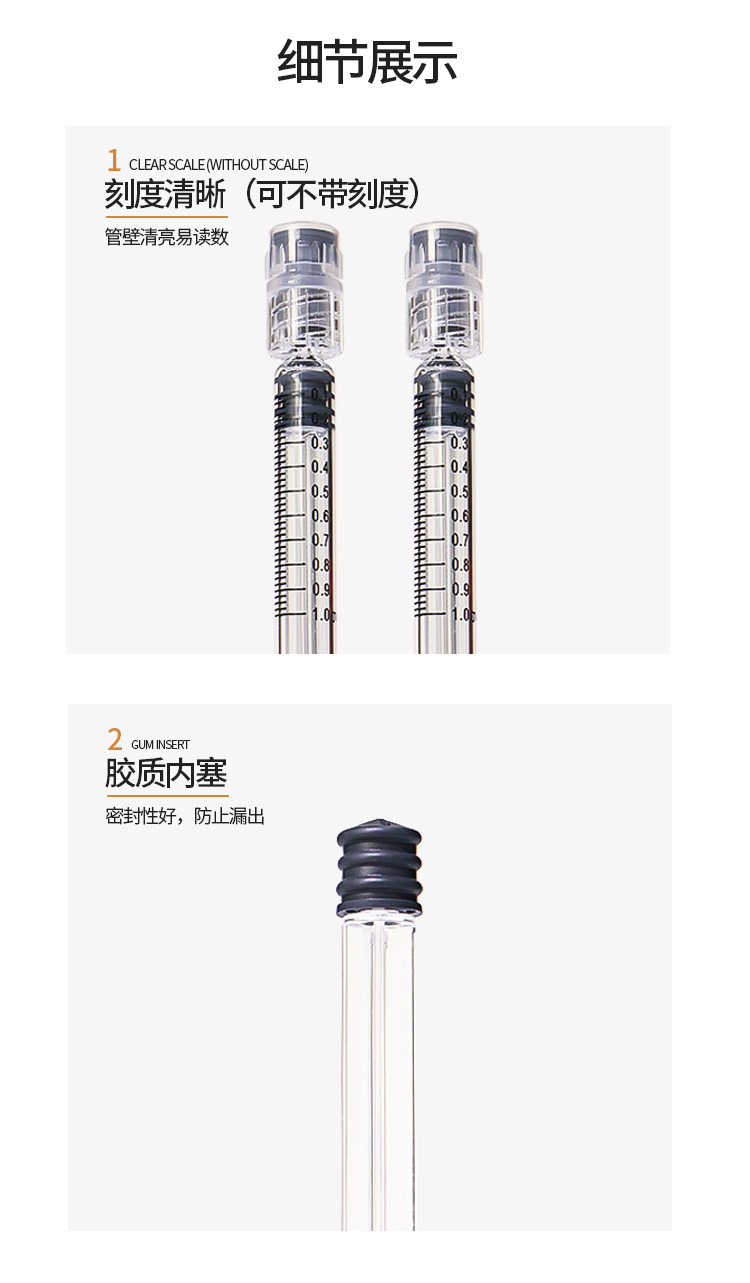 2/3ml带刻度中硼硅美容水光针包材注射器1ml玻璃针管灌封注射器现