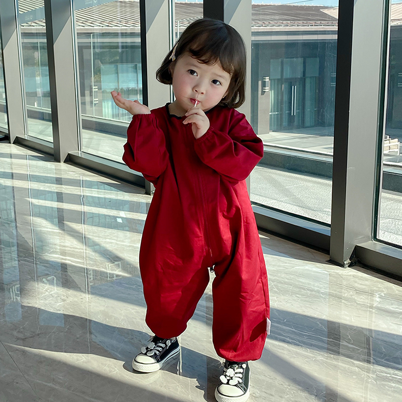 ベビー用ロンパース、屋外用ベビー服、つなぎ服、子供用純綿つなぎ、防汚全身服、秋冬用長袖