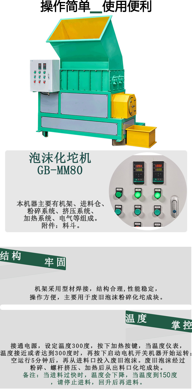 機械式発泡材リサイクル熱溶機 環境に優しいEPS発泡一体機 粉砕機付き