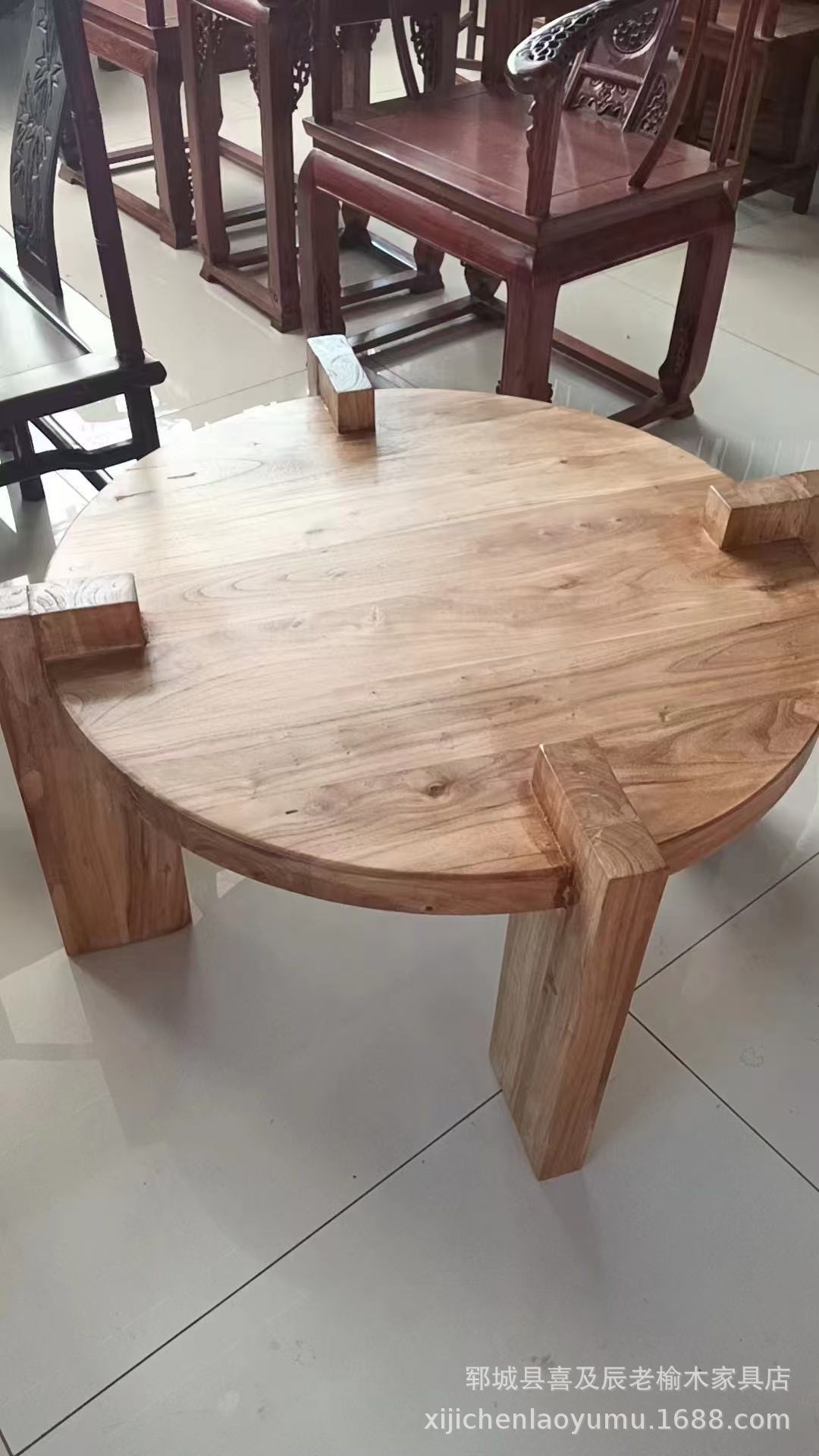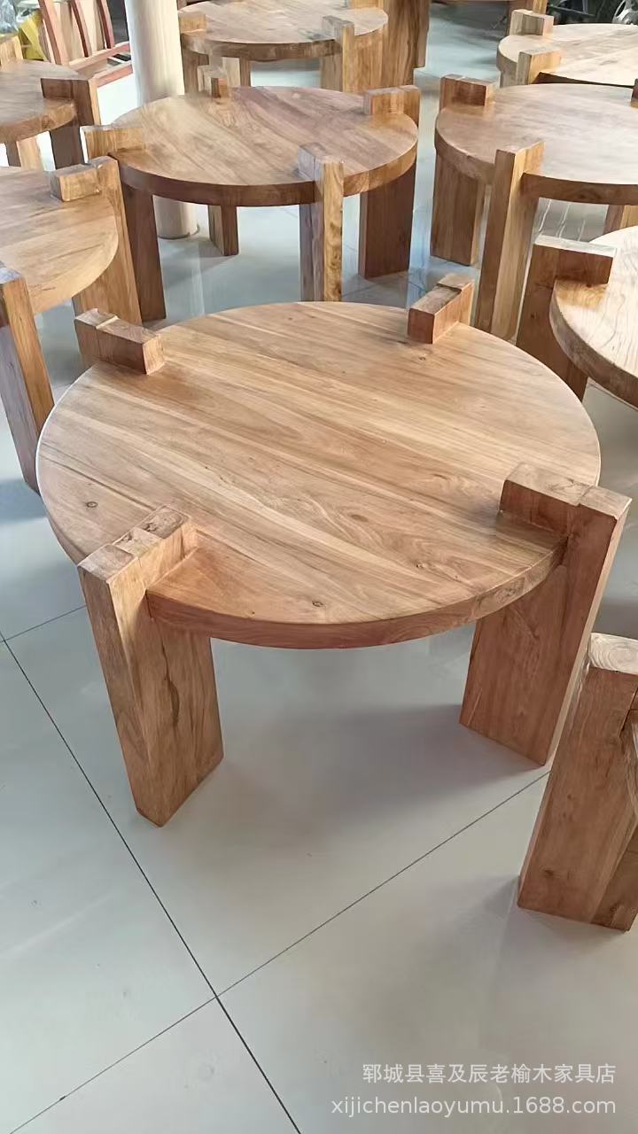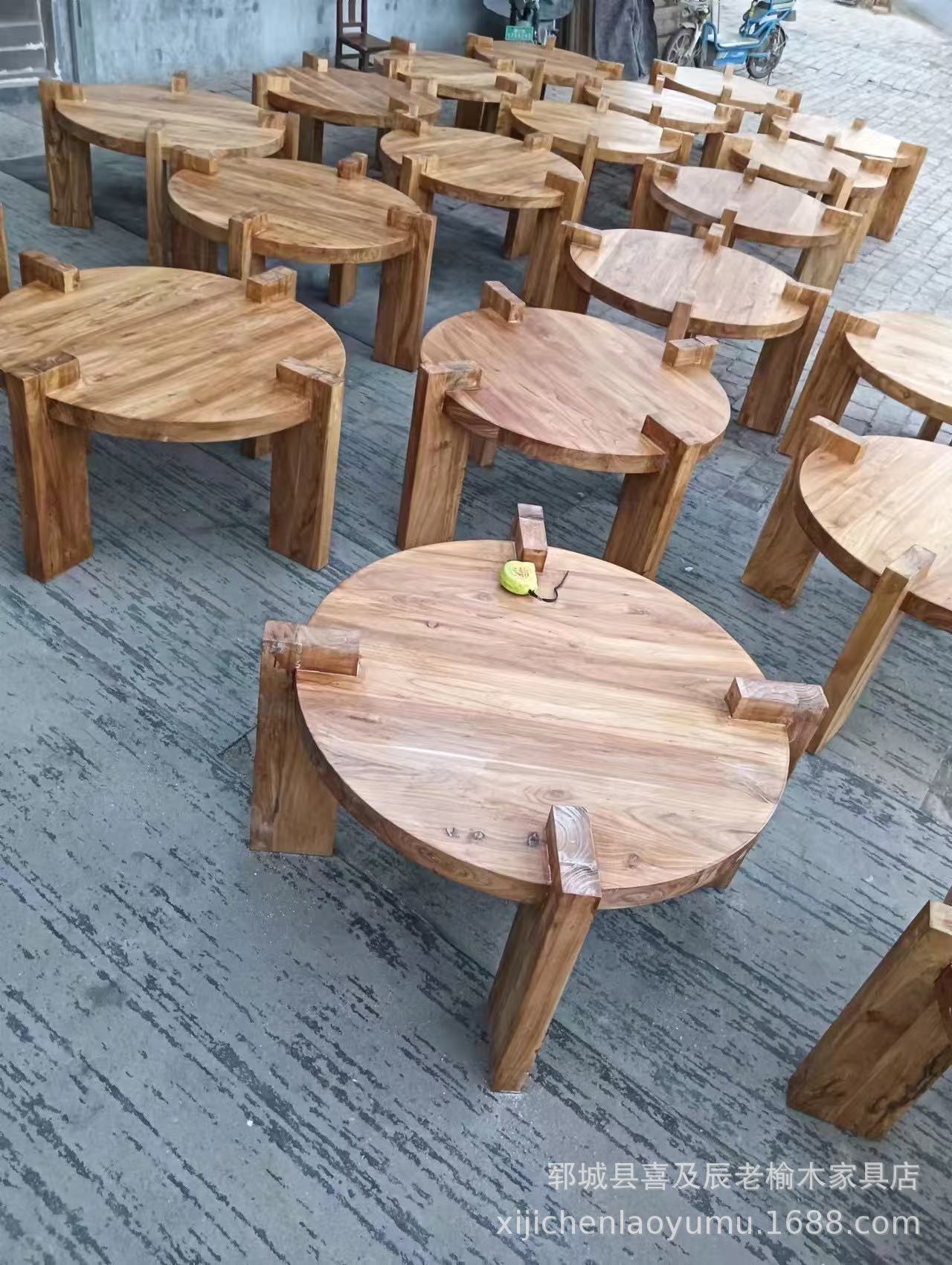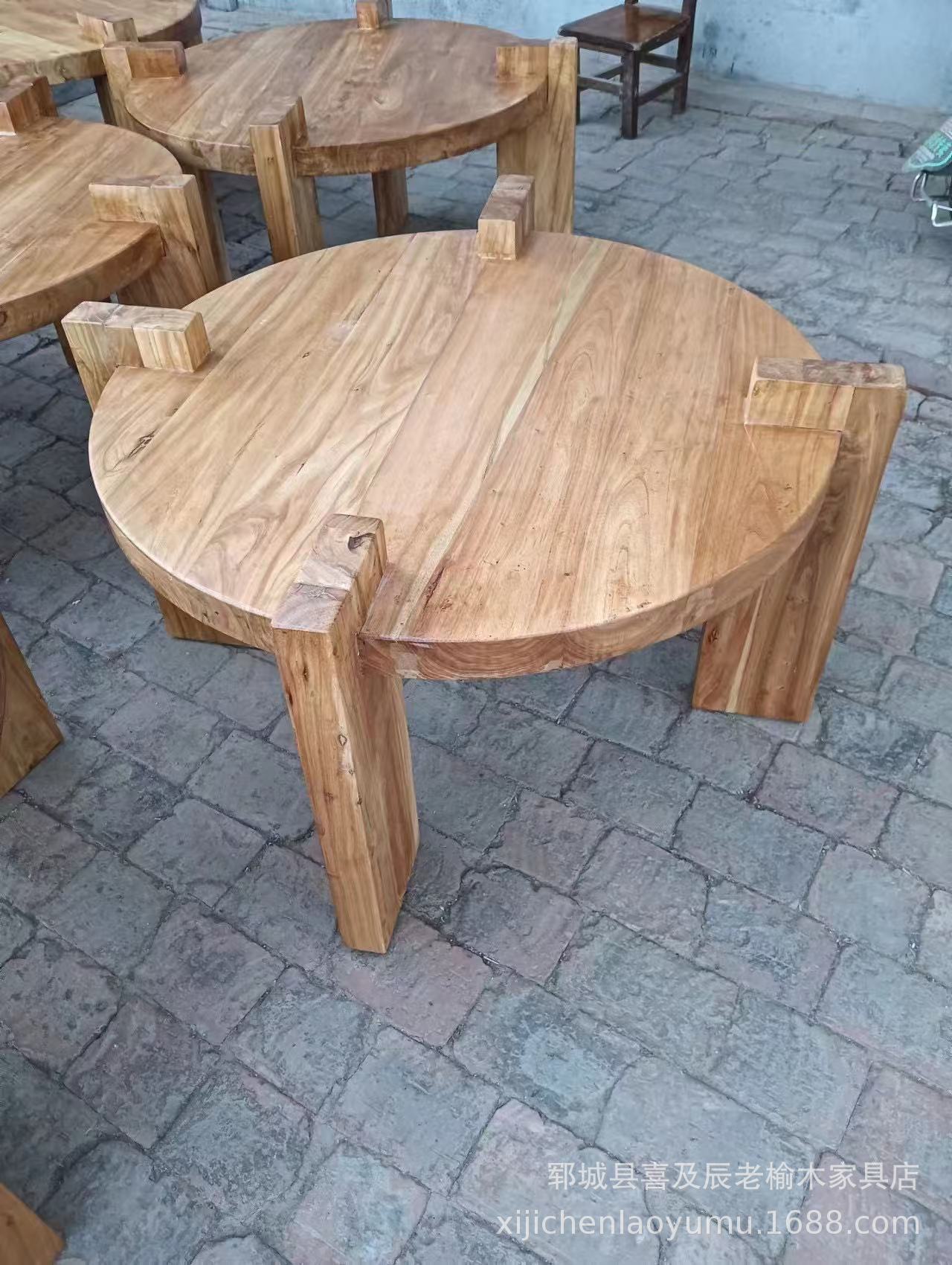 シンプルな古い楡木実木ビーチテーブル屋外庭園露店円卓レジャーお茶テーブル屋台中華料理店